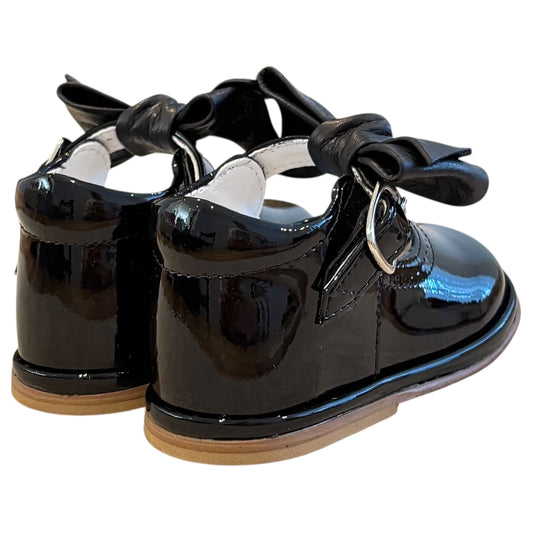 Girls Black Bow Patent School Shoes