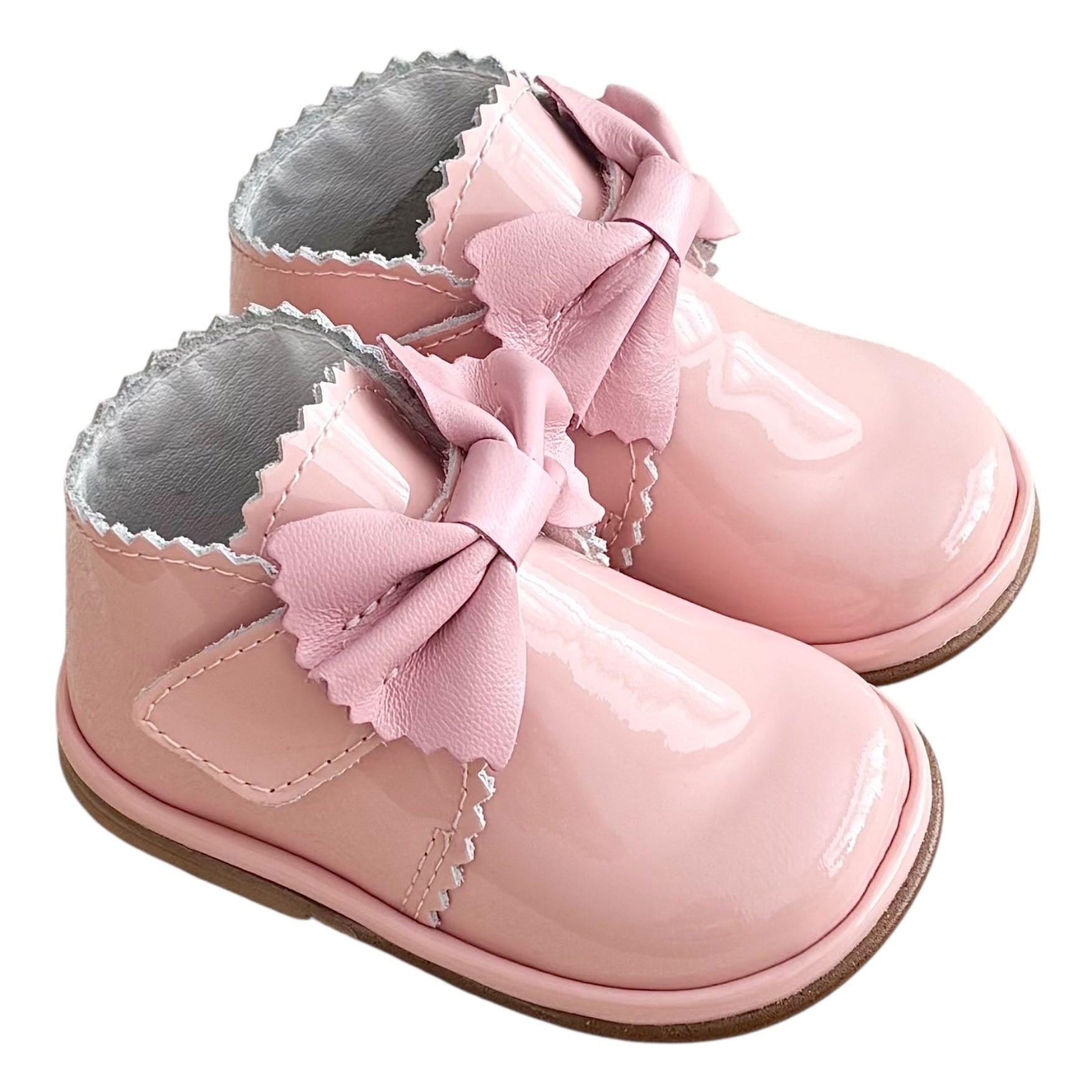 Sharon Pink Patent Leather Velcro Boot with Bow
