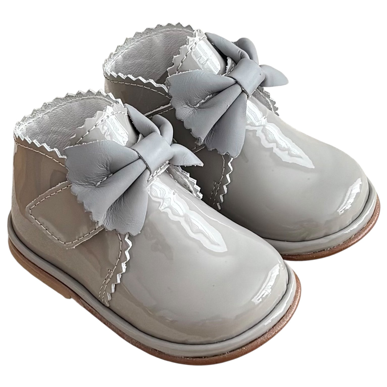 Sharon Grey Patent Leather Velcro Boot with Bow