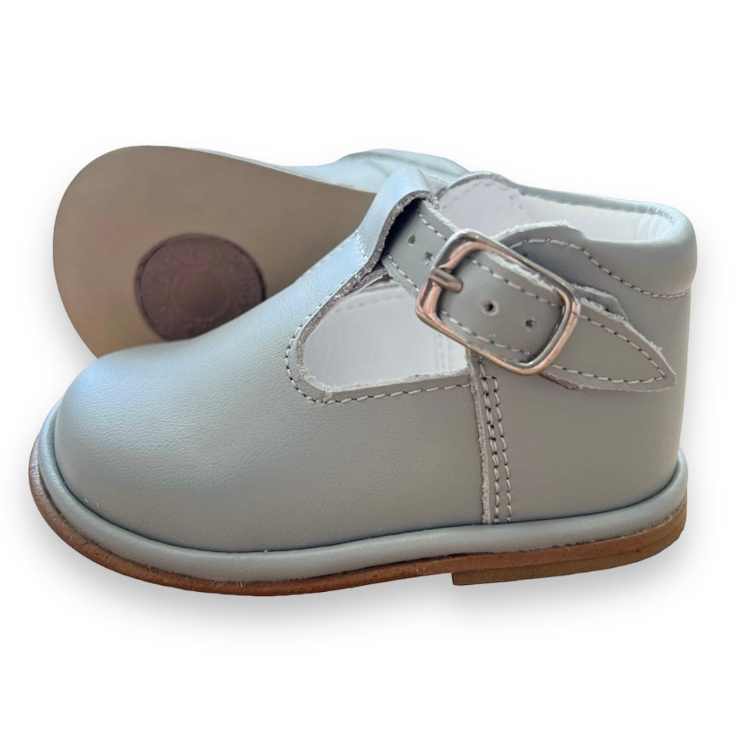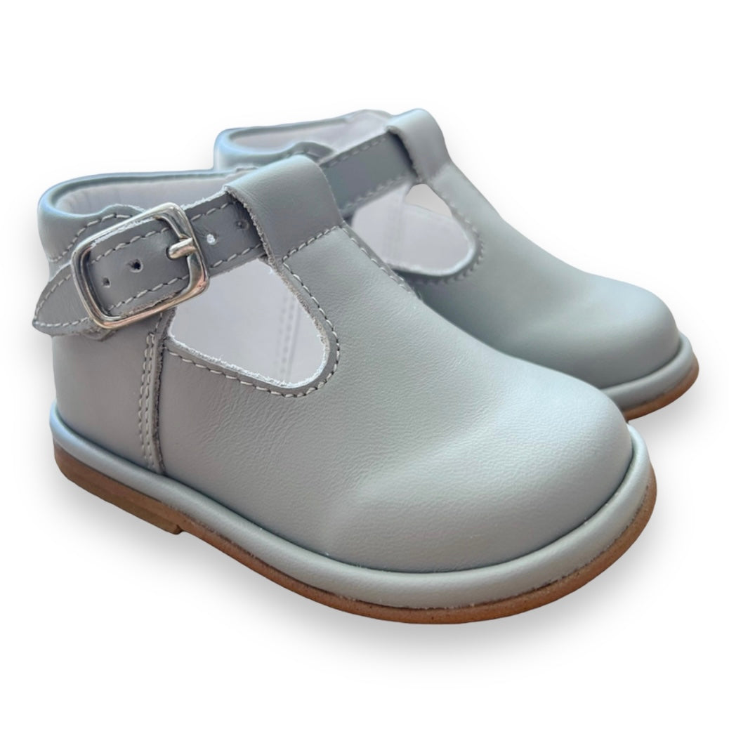 Borboleta Grey Leather Fernando T-Bar Shoes