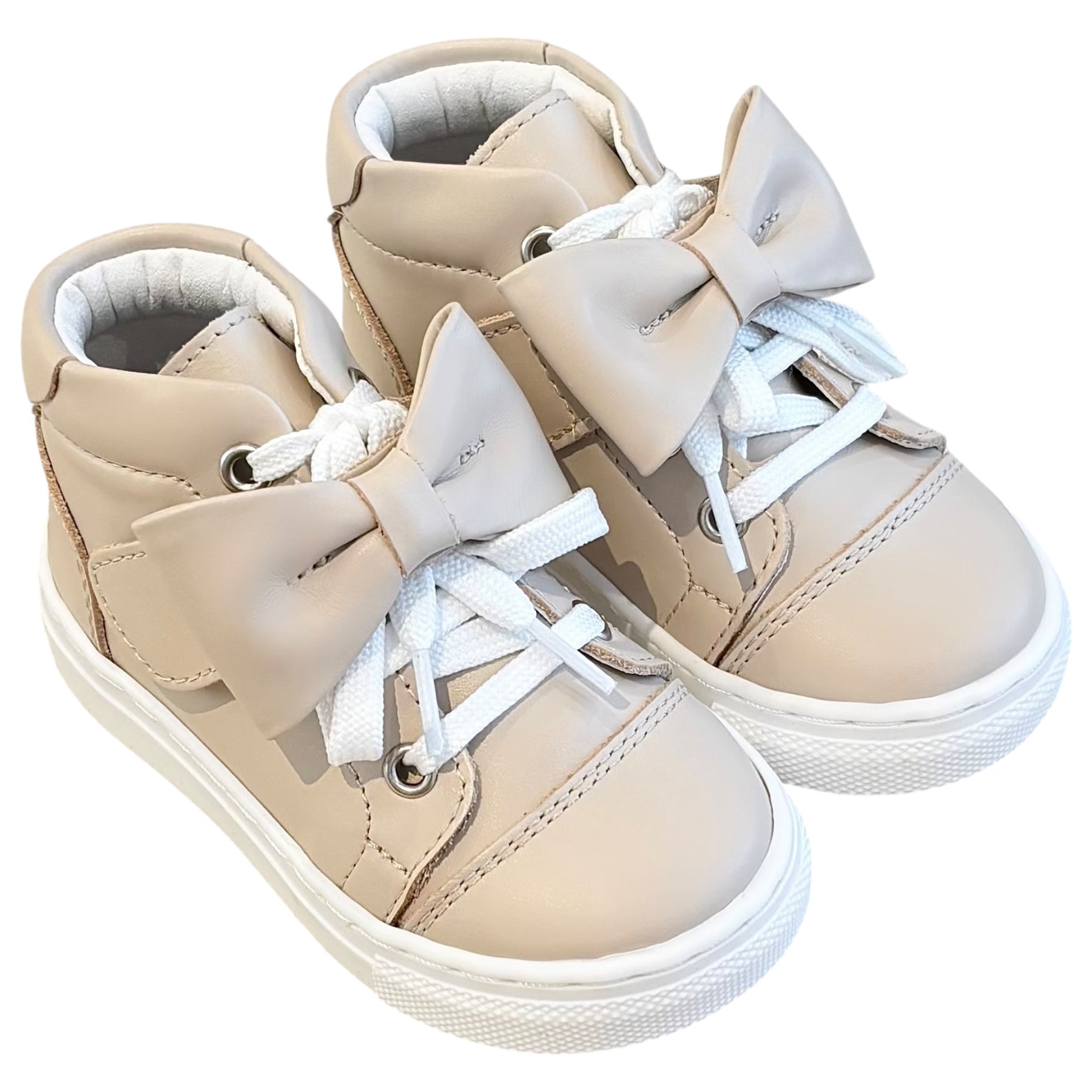 Nude Leather Tatiana Bow Hi-Top Trainers