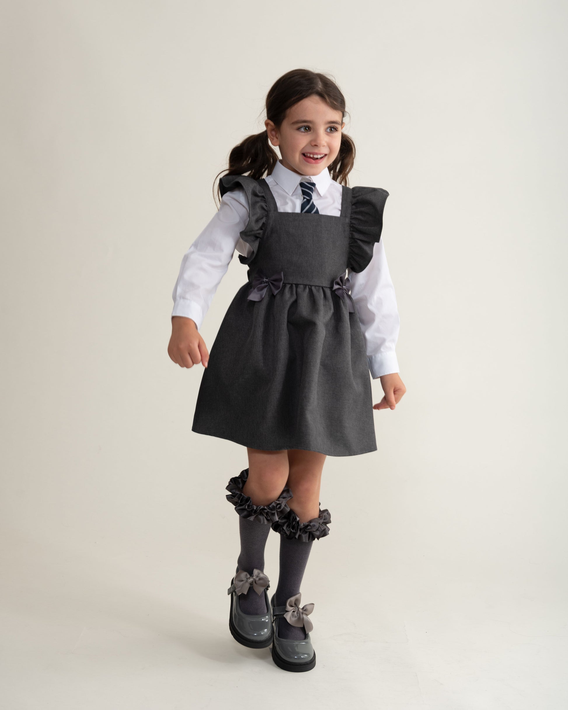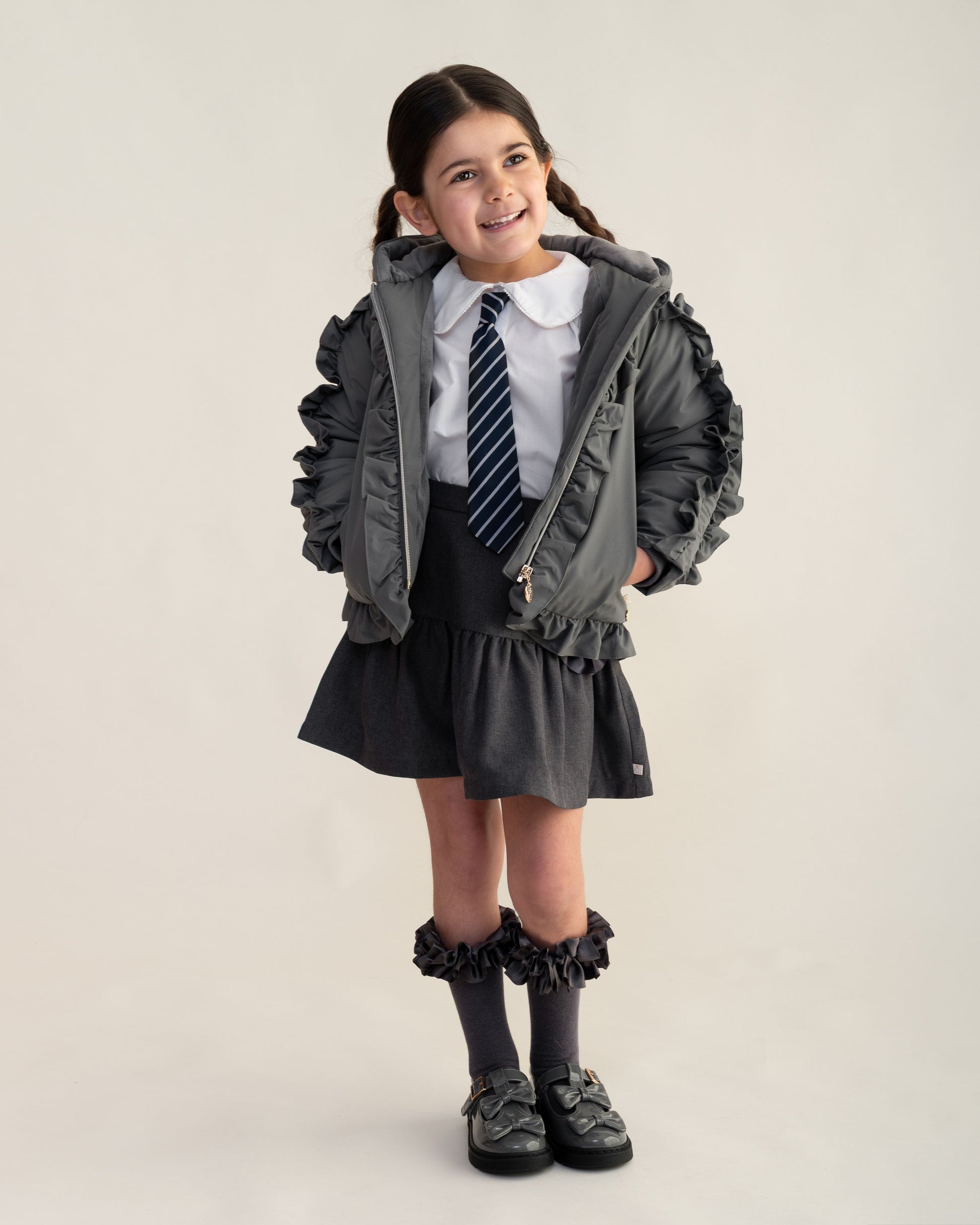 Caramelo Girls Grey Ribbon Frill Knee Socks