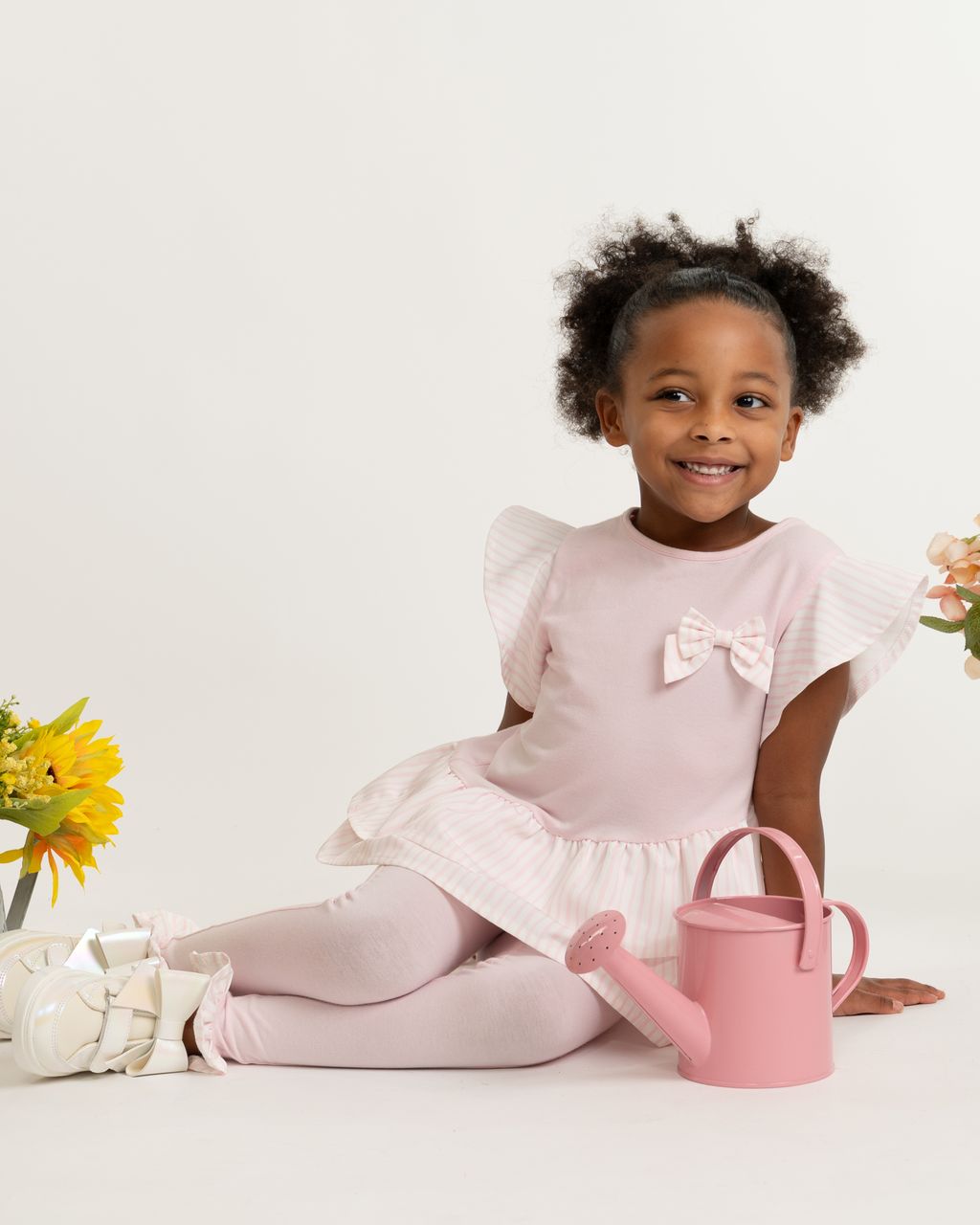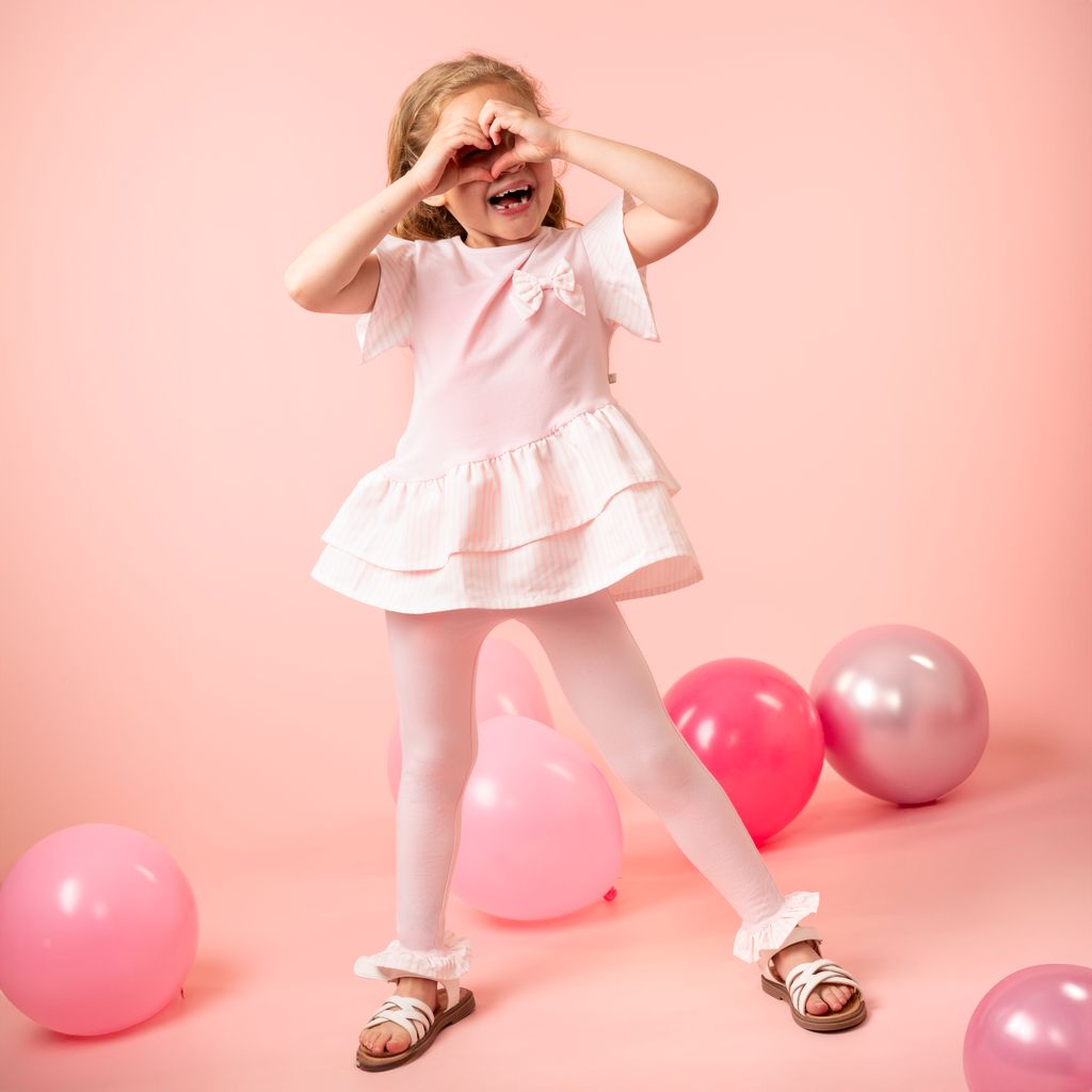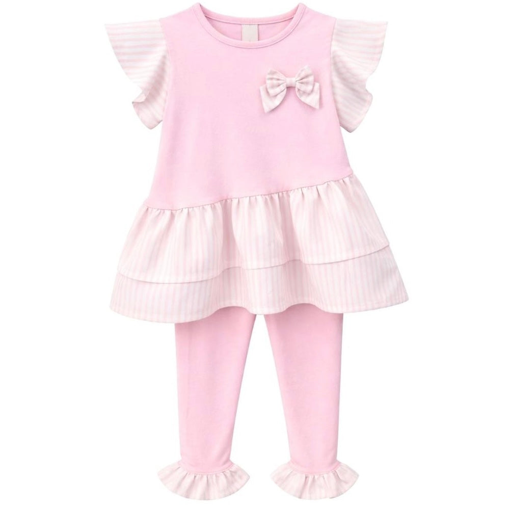 Girls Pale Pink Stretch Jersey Striped Legging Set
