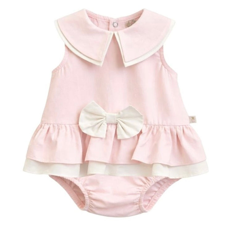 Caramelo Girls Pale Pink Woven Sailor Collared Romper