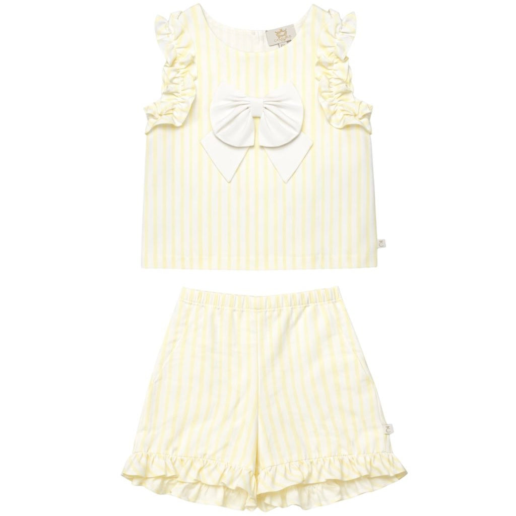 Caramelo Girls Yellow Lemon Striped Bow Short Set