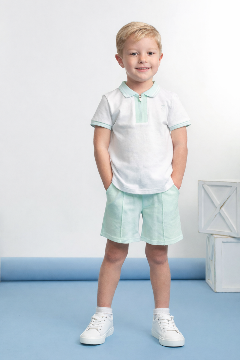 Boys Mint Green Zip Up Polo Short Set