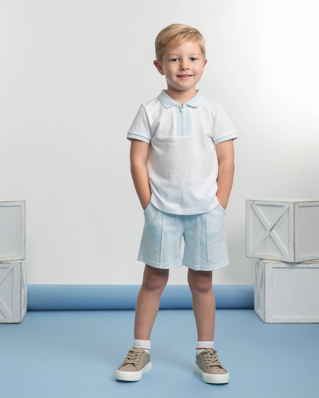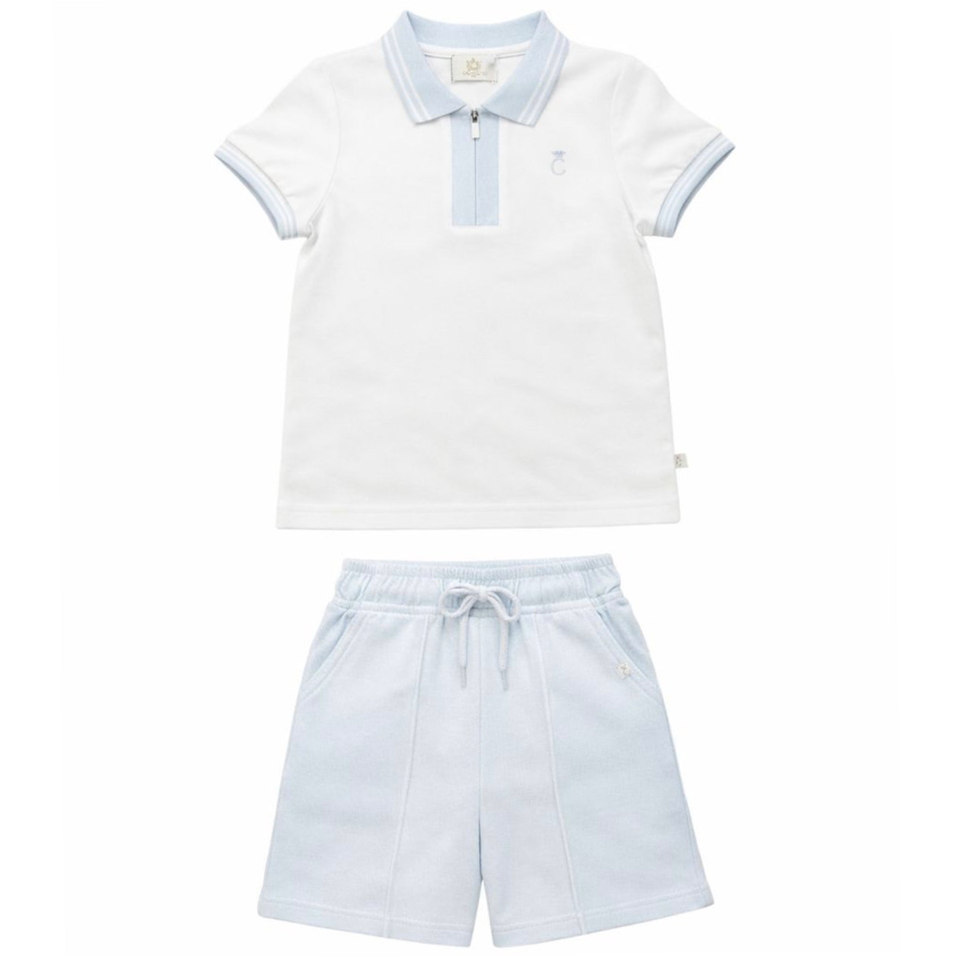 Caramelo Boys Pale Blue Zip Up Polo Short Set