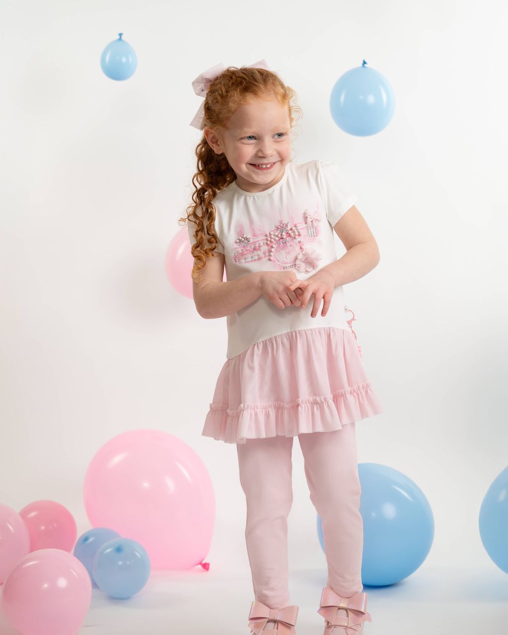 Girls Pale Pink Stretch Jersey Legging Set