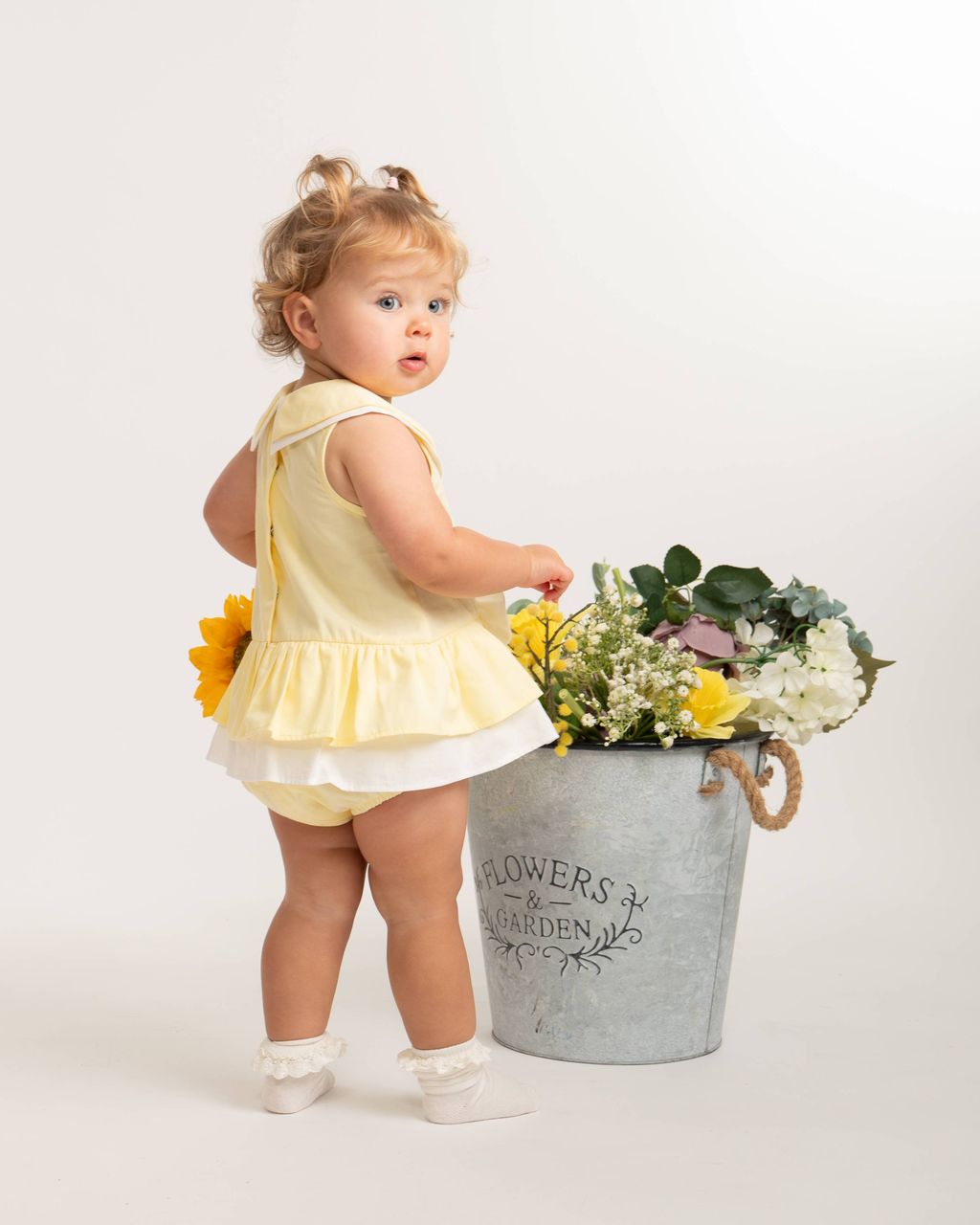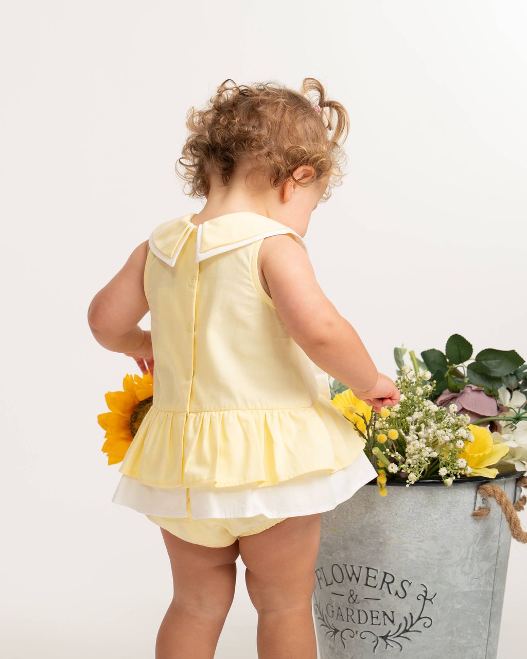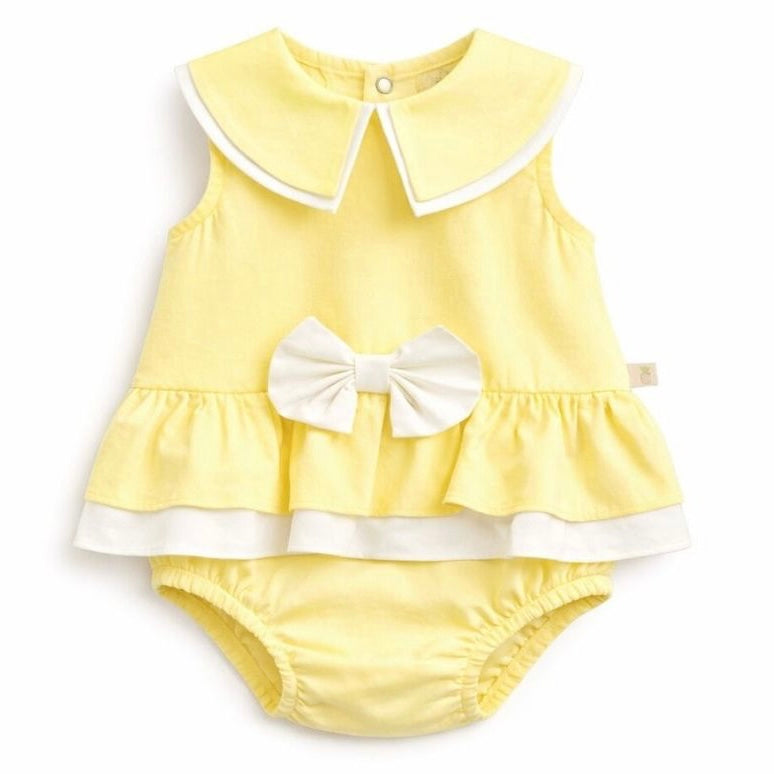 Girls Yellow Lemon Woven Sailor Collared Romper