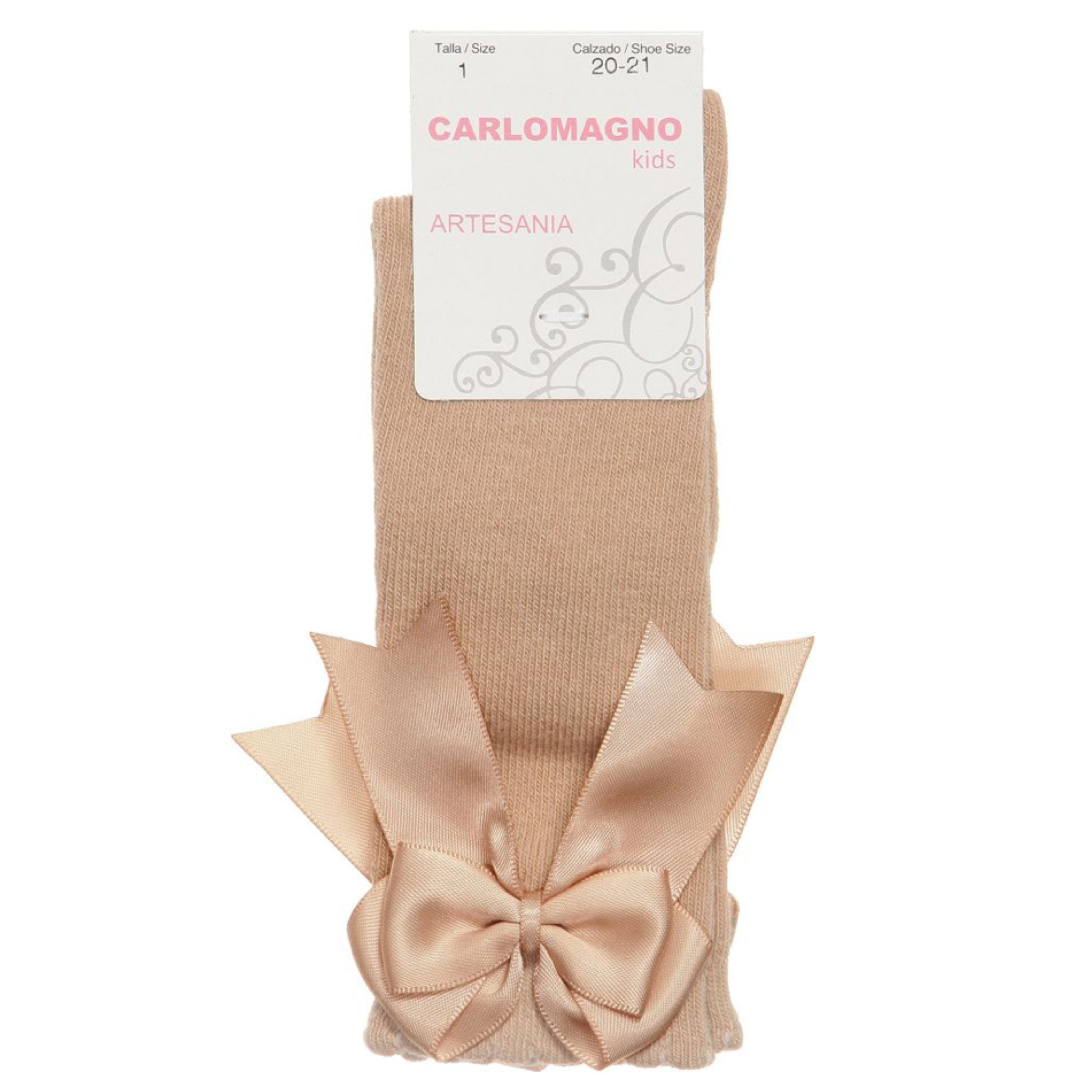 Carlomagno Camel Knee High Bow Socks