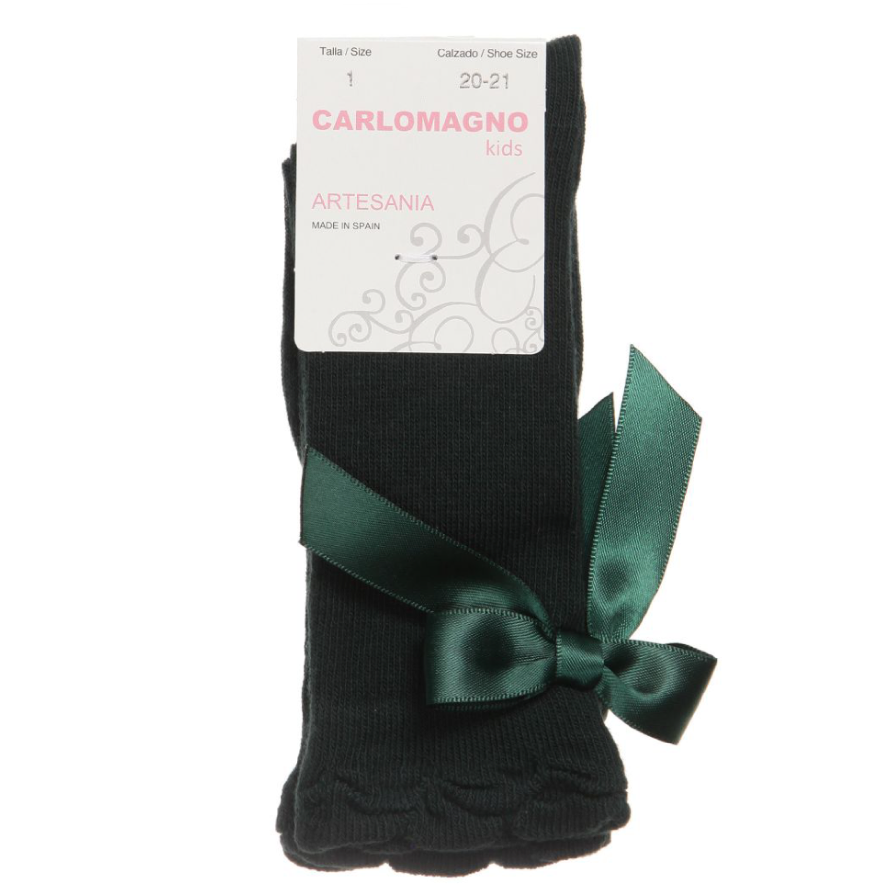 Carlomagno Bottle Green Knee High Bow Socks