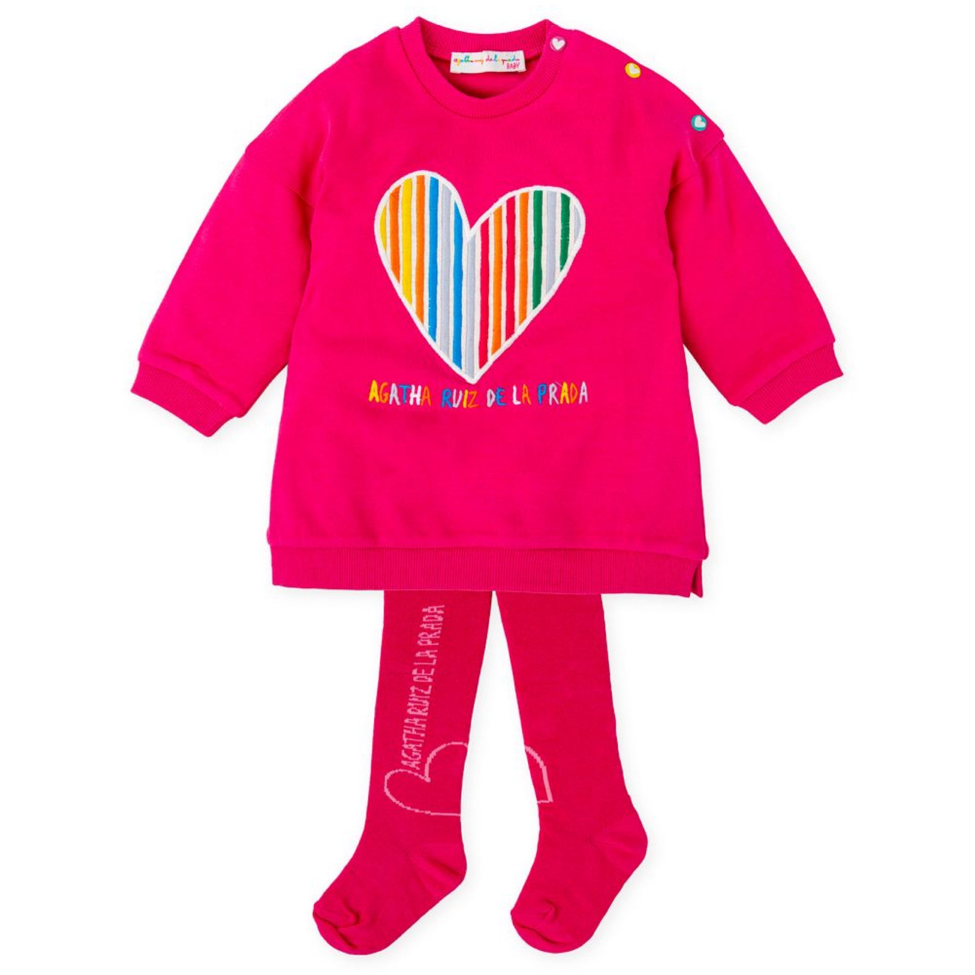 Agatha Ruiz Baby Girls Pink Jumper Dress and Tights