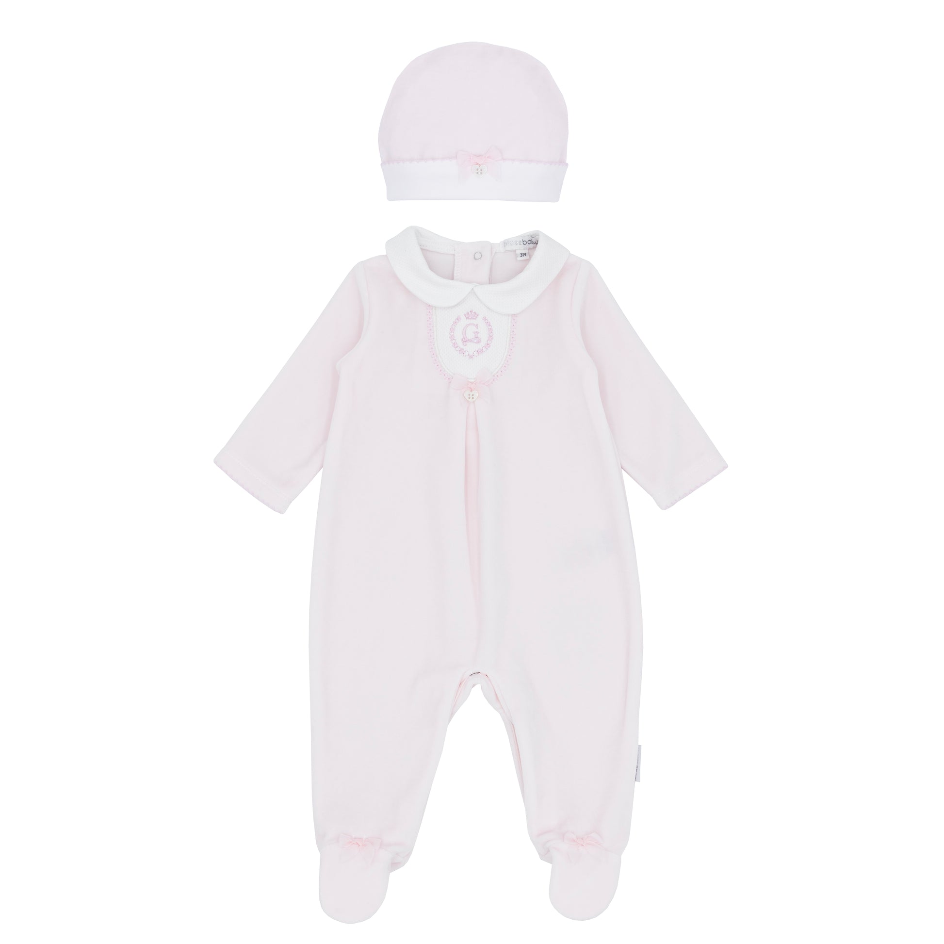 Blues Baby Girls Pale Pink Velour Babygrow and Hat