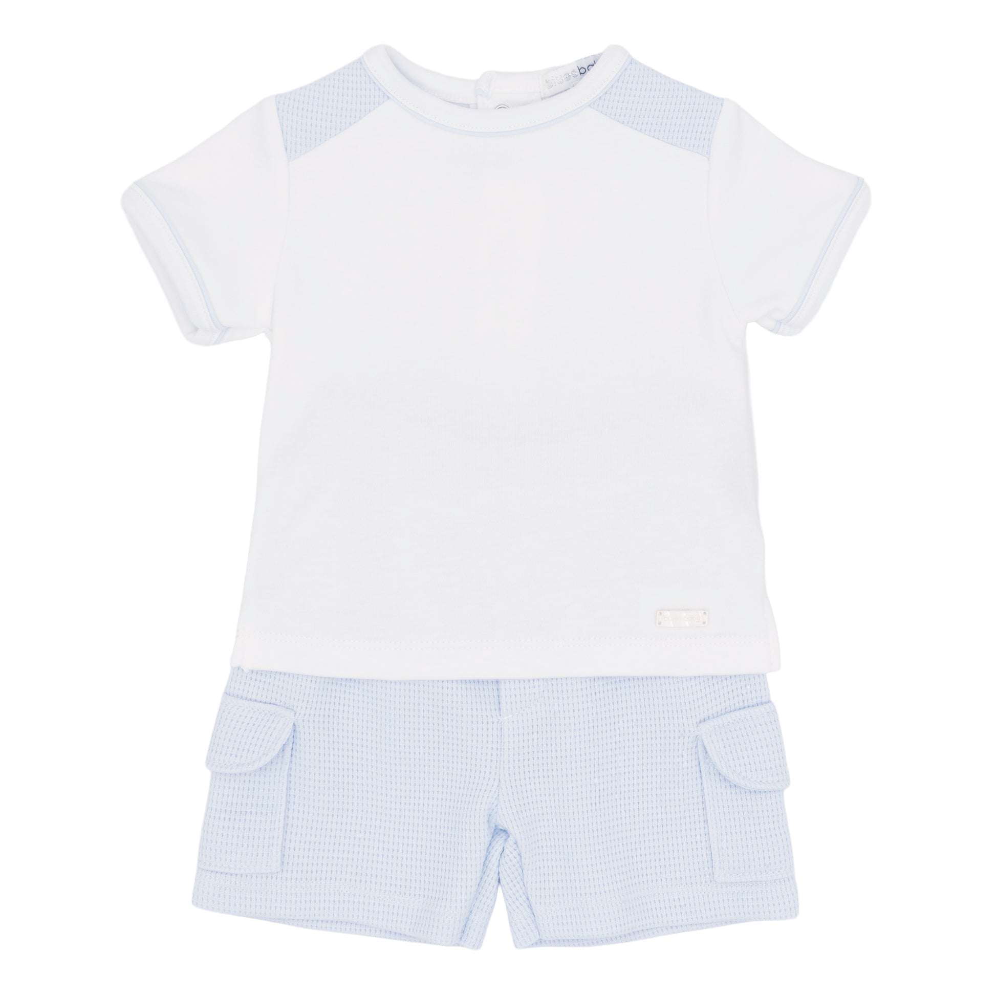 Blues Baby Boys White Pale Blue Waffle Short Set