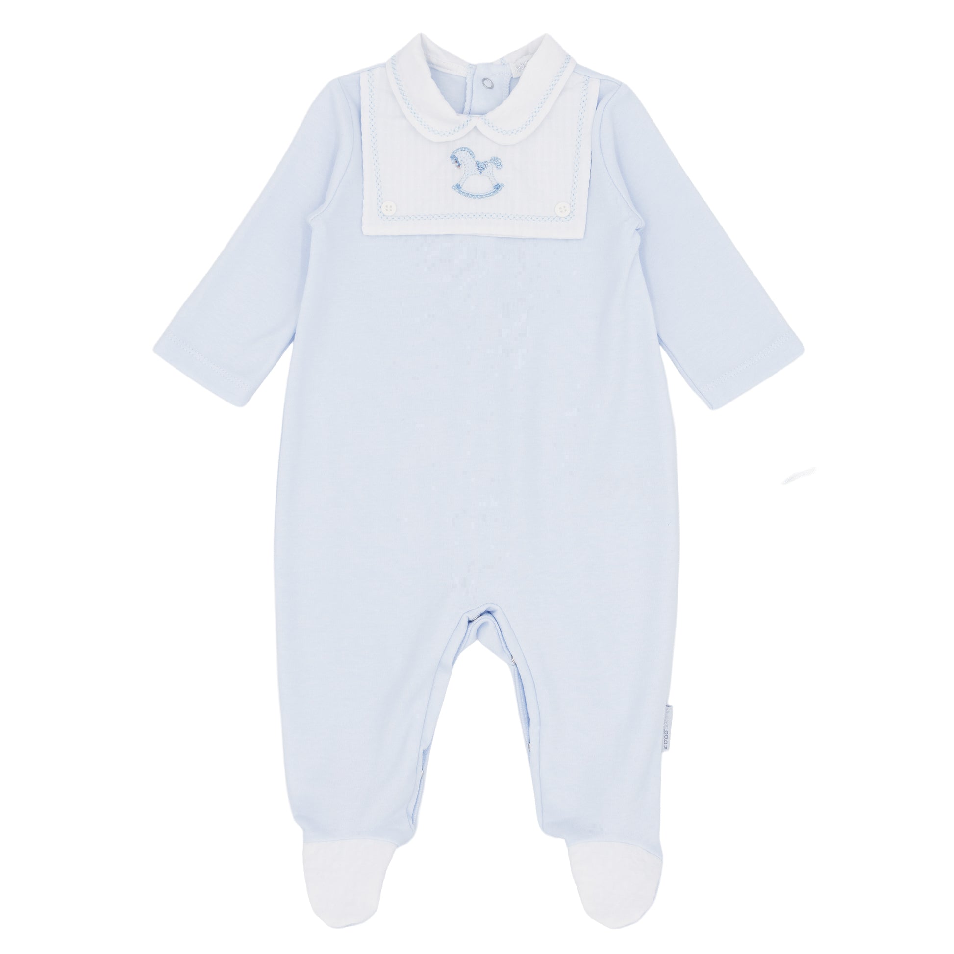 Boys Pale Blue Soft Cotton Rocking Horse Babygrow