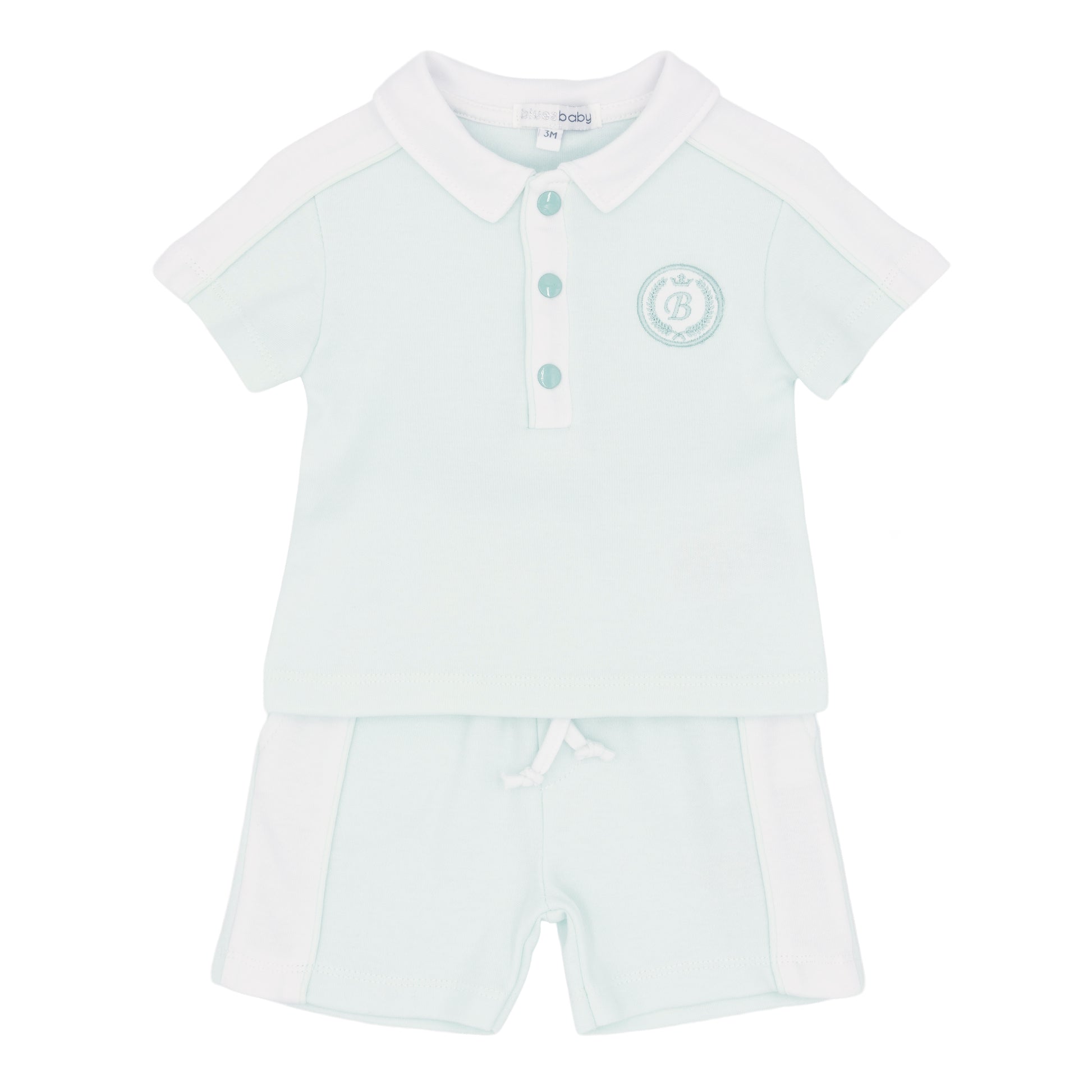 Blues Baby Boys Mint Green Sporty Jersey Polo Short Set