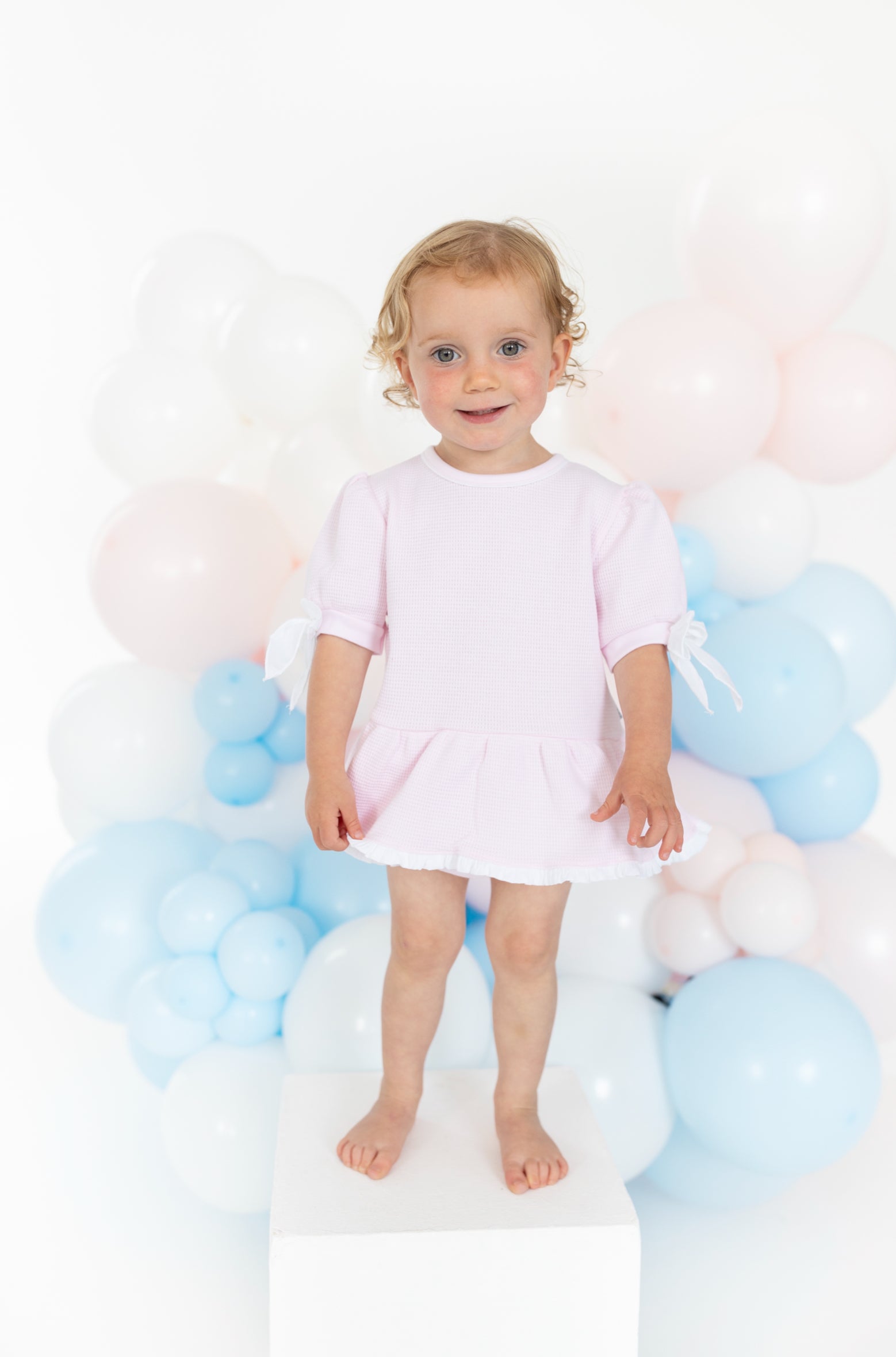 Blues Baby Girls Pale Pink Waffle Bow Jam Pant Set