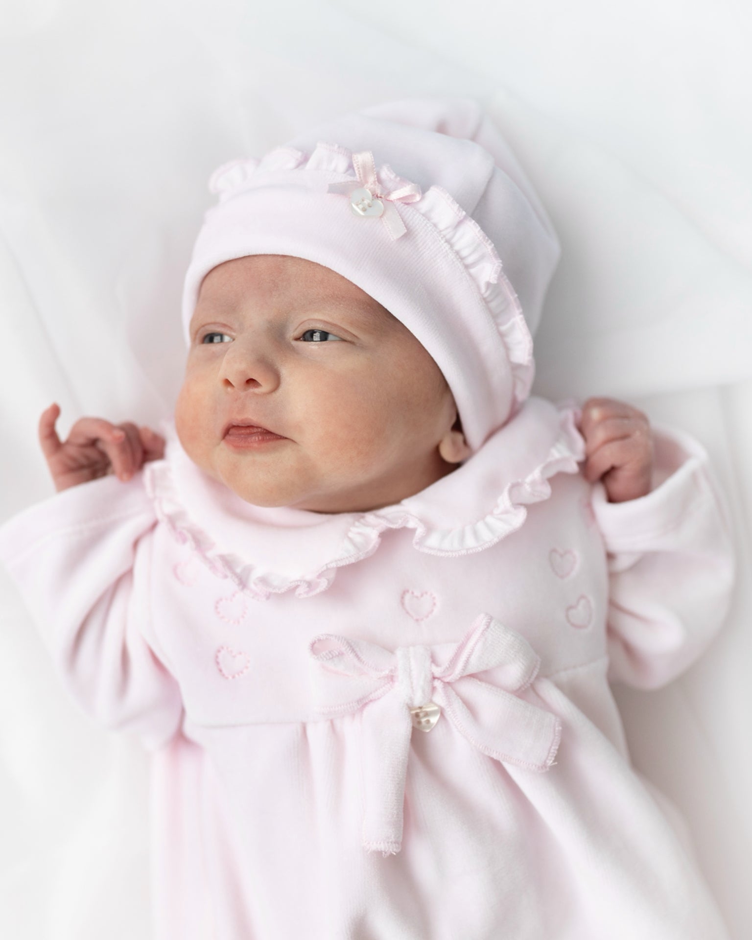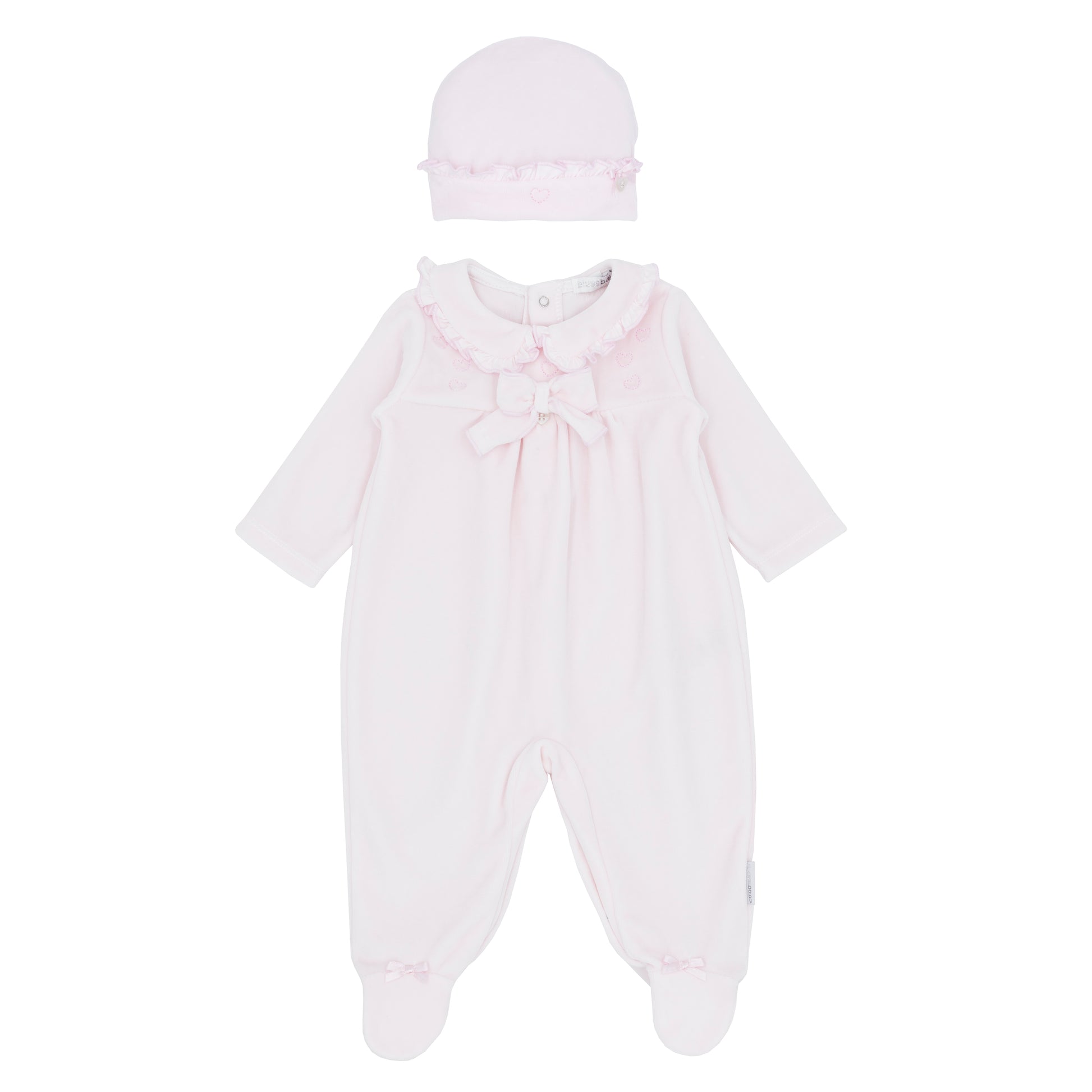 Blues Baby Girls Pale Pink Velour Babygrow and Hat
