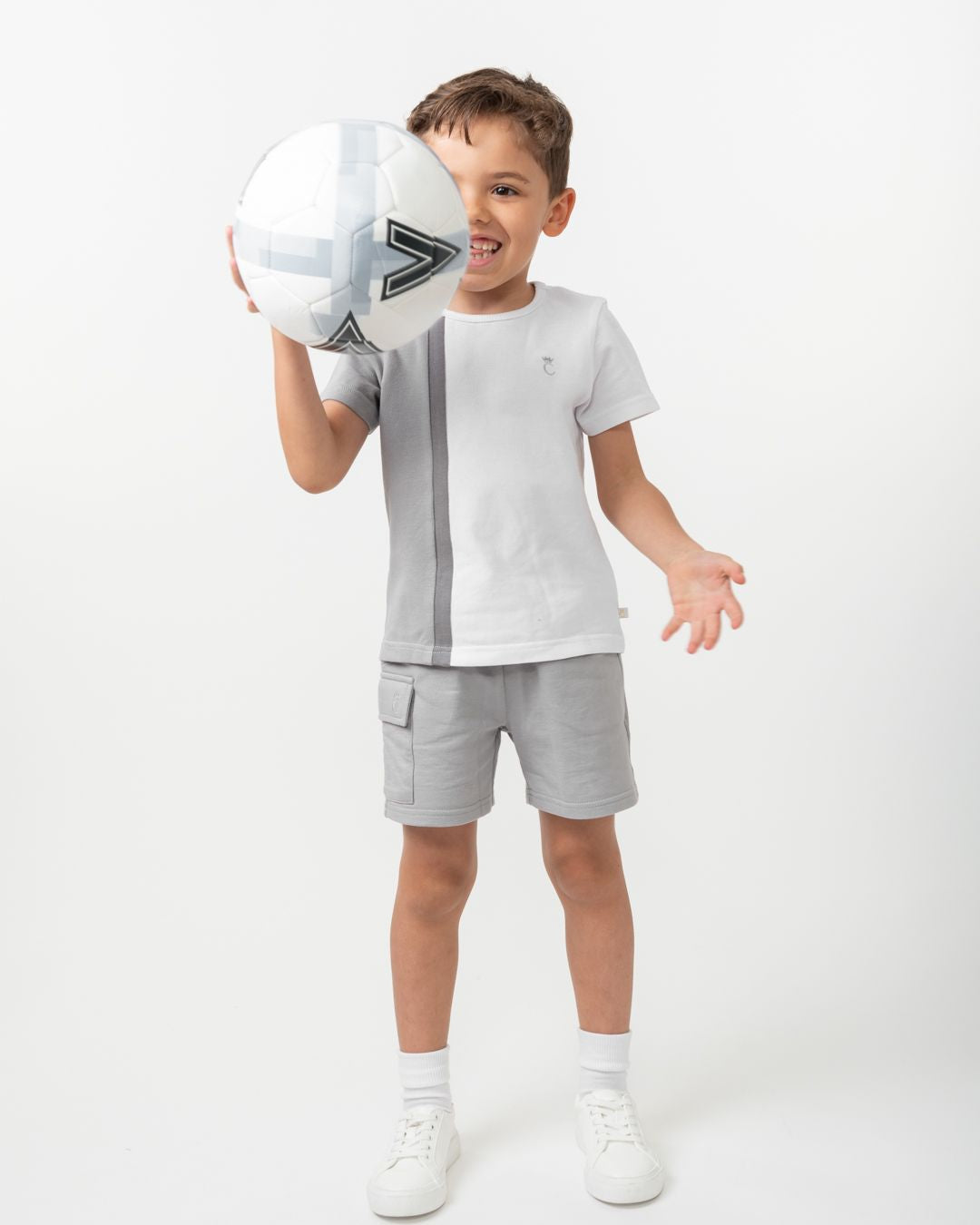 Boys Grey and White Short Set