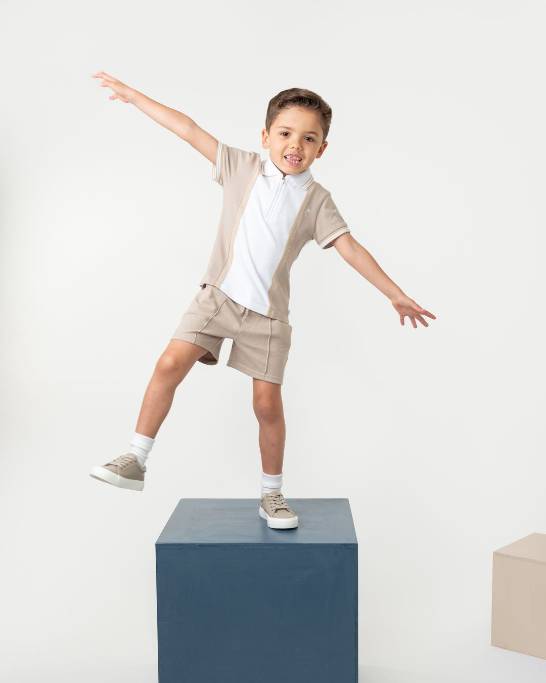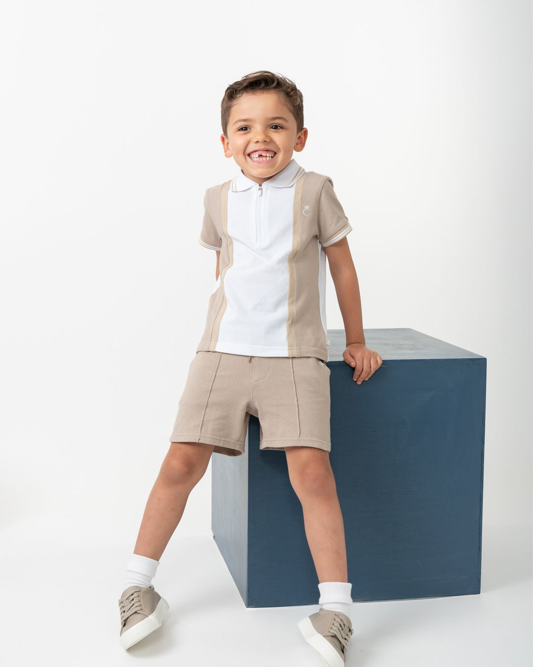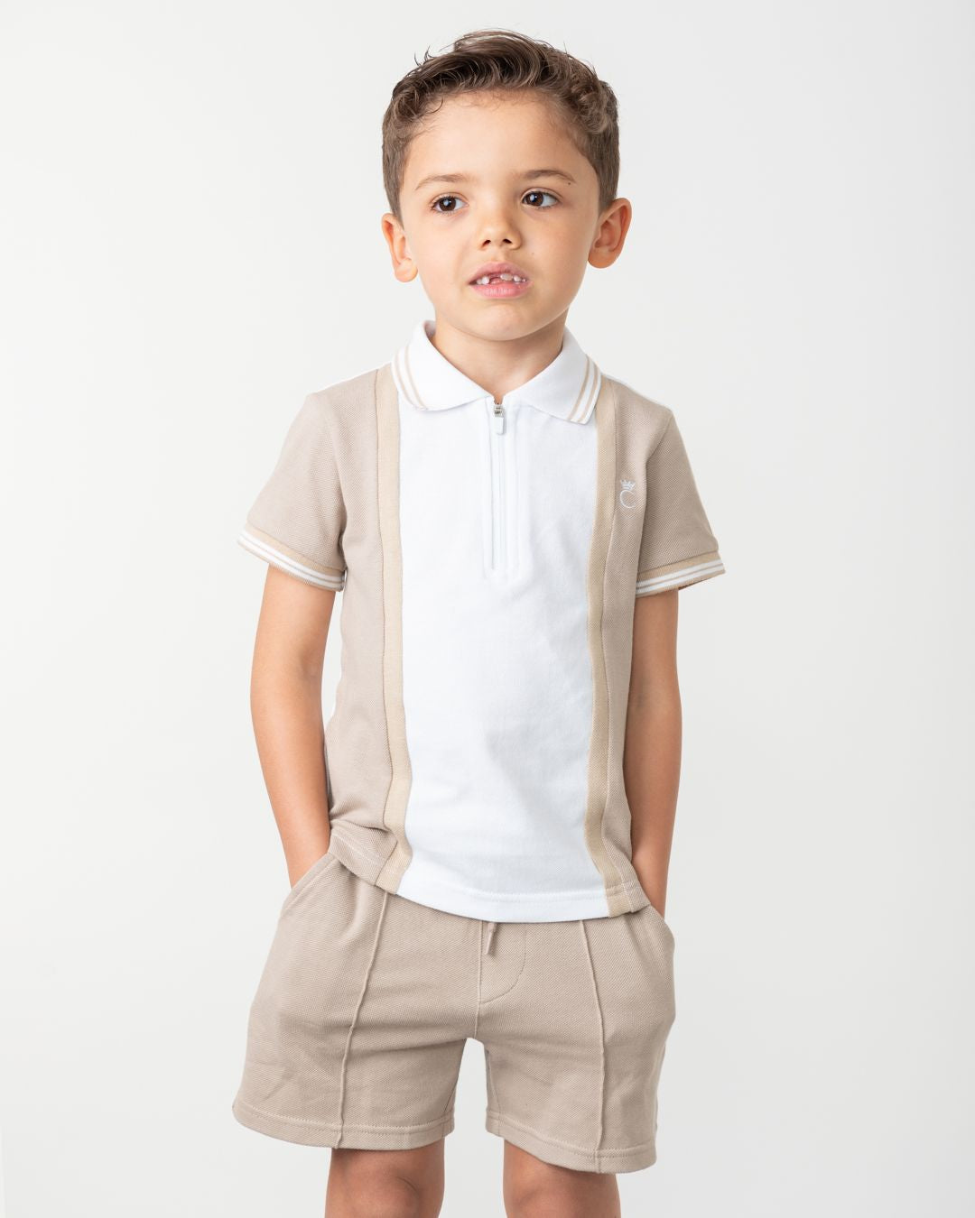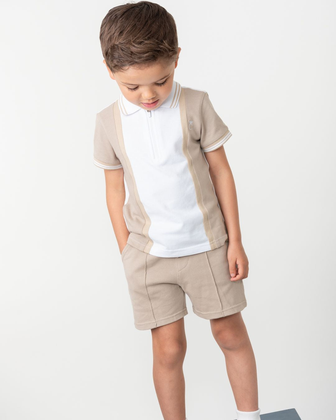 Boys Beige and White Polo Short Set