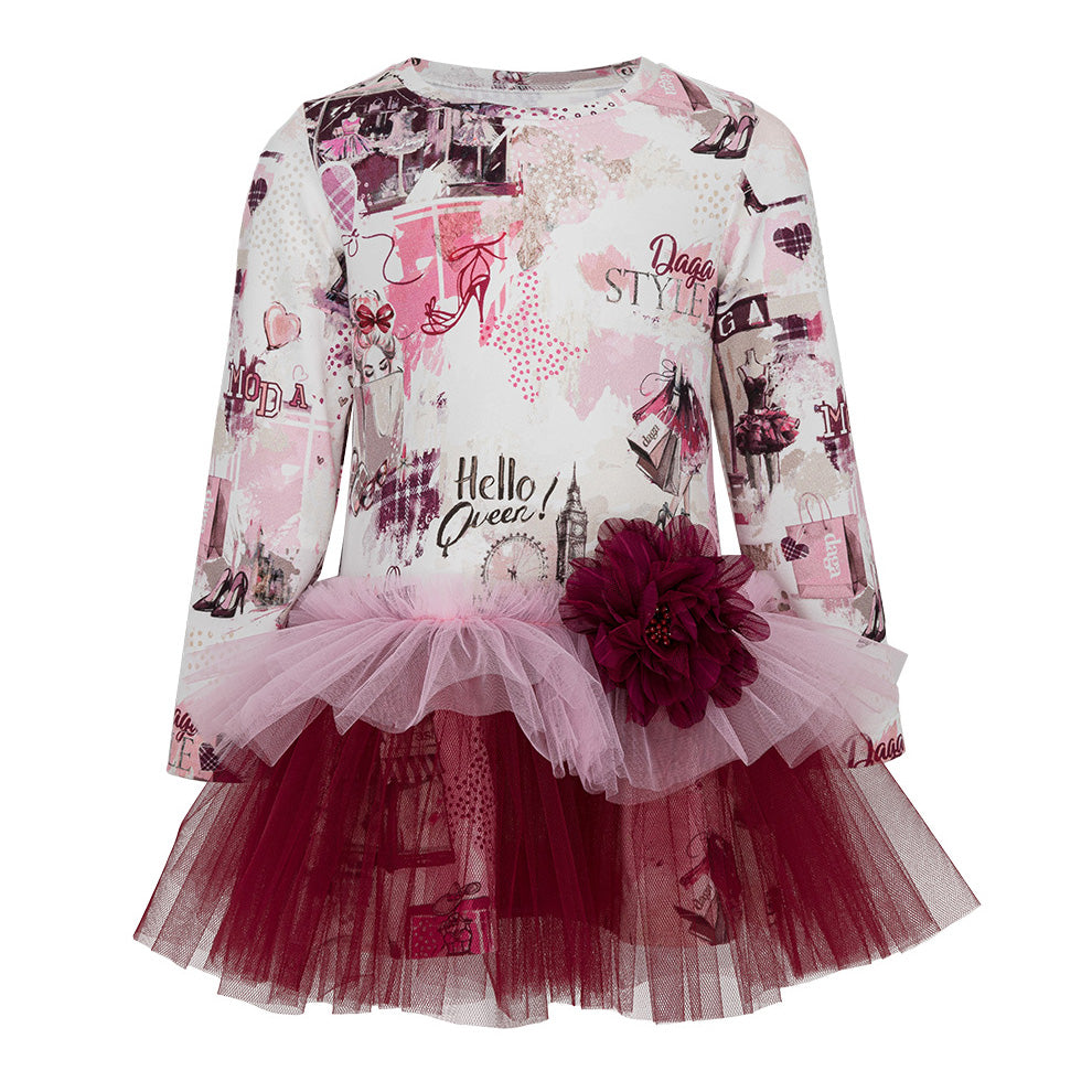Daga Girls Pink Print Tulle Dress
