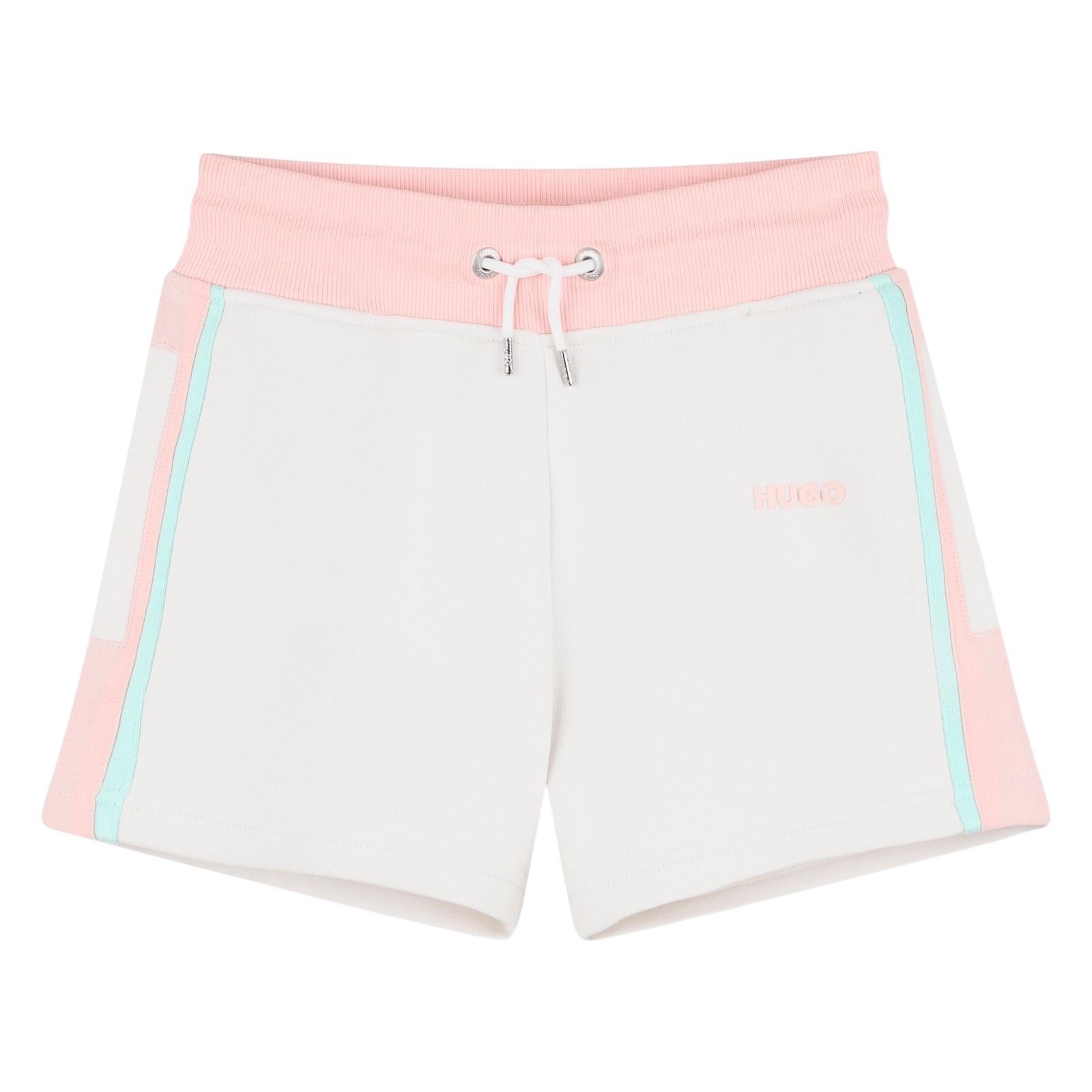 HUGO Girls Cream Pale Pink Logo Sweat Short