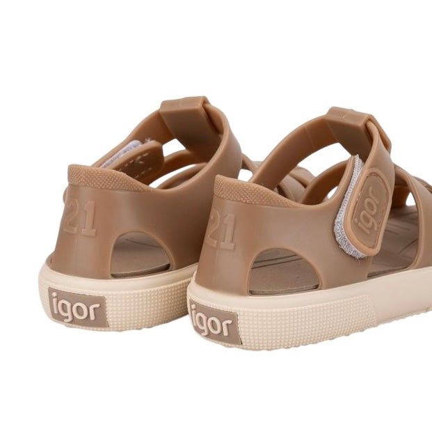 Igor Taupe Two Tone Velcro Strap Jelly Sandals