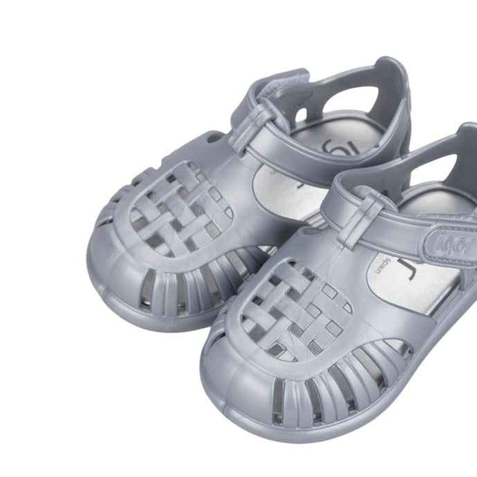 Igor Girls Silver Velcro Strap Tobby Sandals