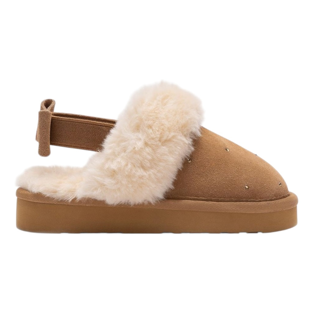 Girls Brown Suede ‘Sandra’ Fluffy Slippers
