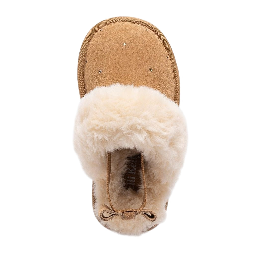 Lelli Kelly Girls Brown Suede ‘Sandra’ Fluffy Slippers