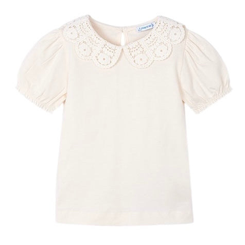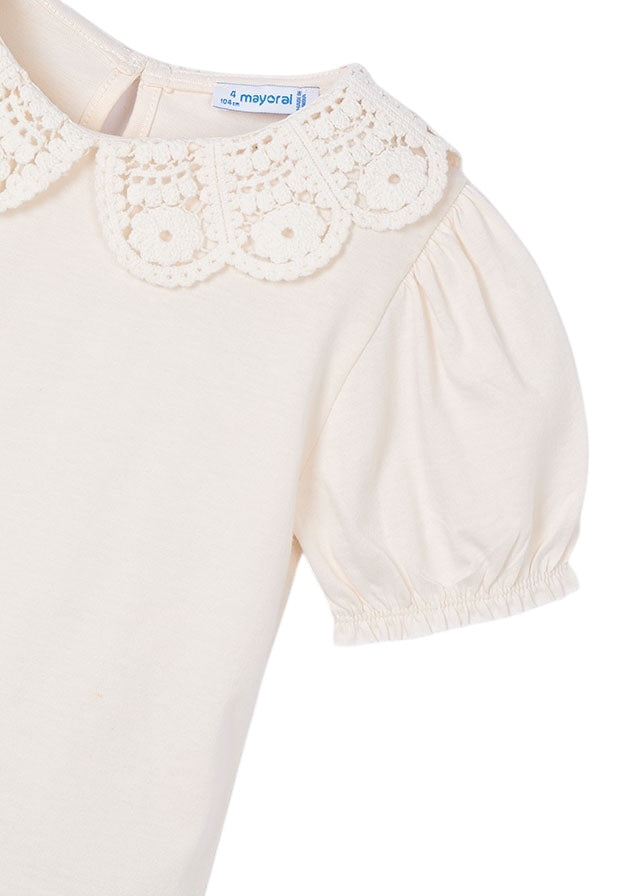 Mayoral Girls Cream Crochet Collar T-Shirt