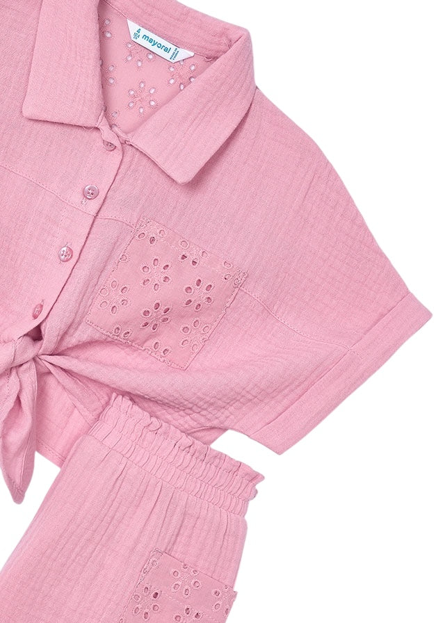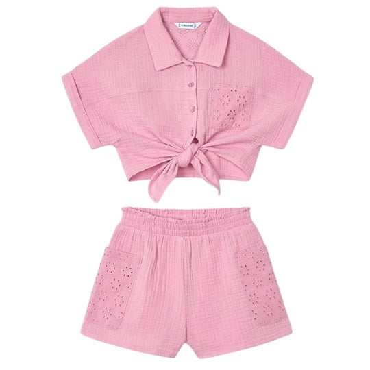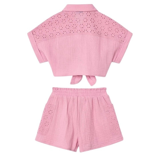 Mayoral Girls Pink Cotton Crinkle Short Set