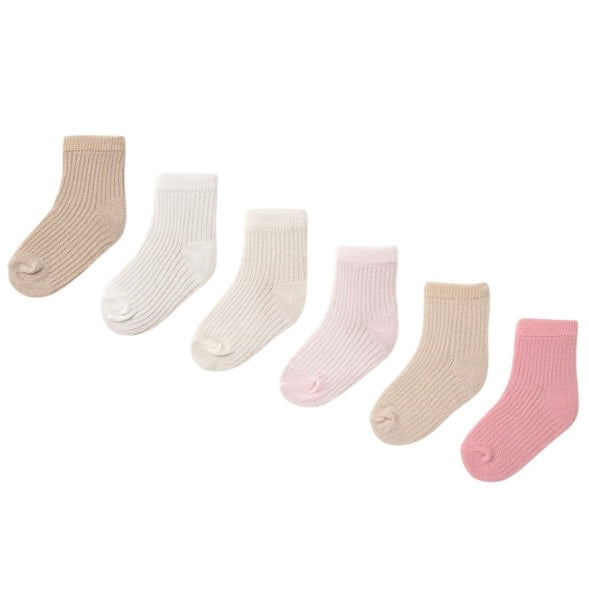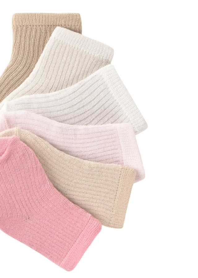 Mayoral Girls Pale Pink Beige 6 Pack Socks