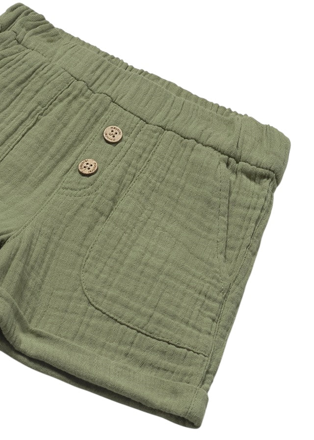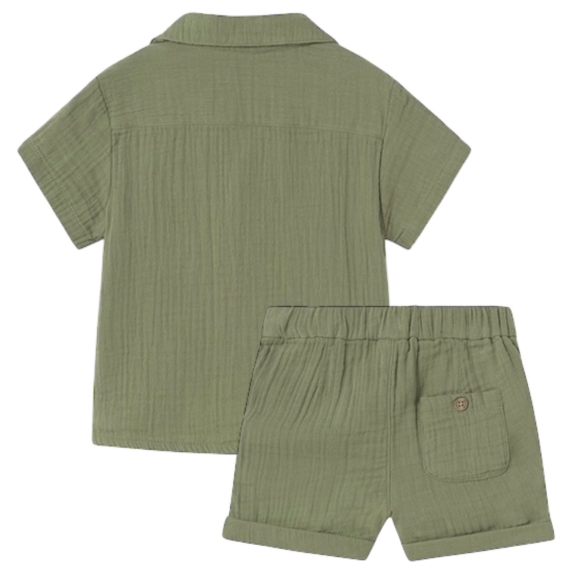 Mayoral Boys Khaki Green Cotton Crinkle Short Set