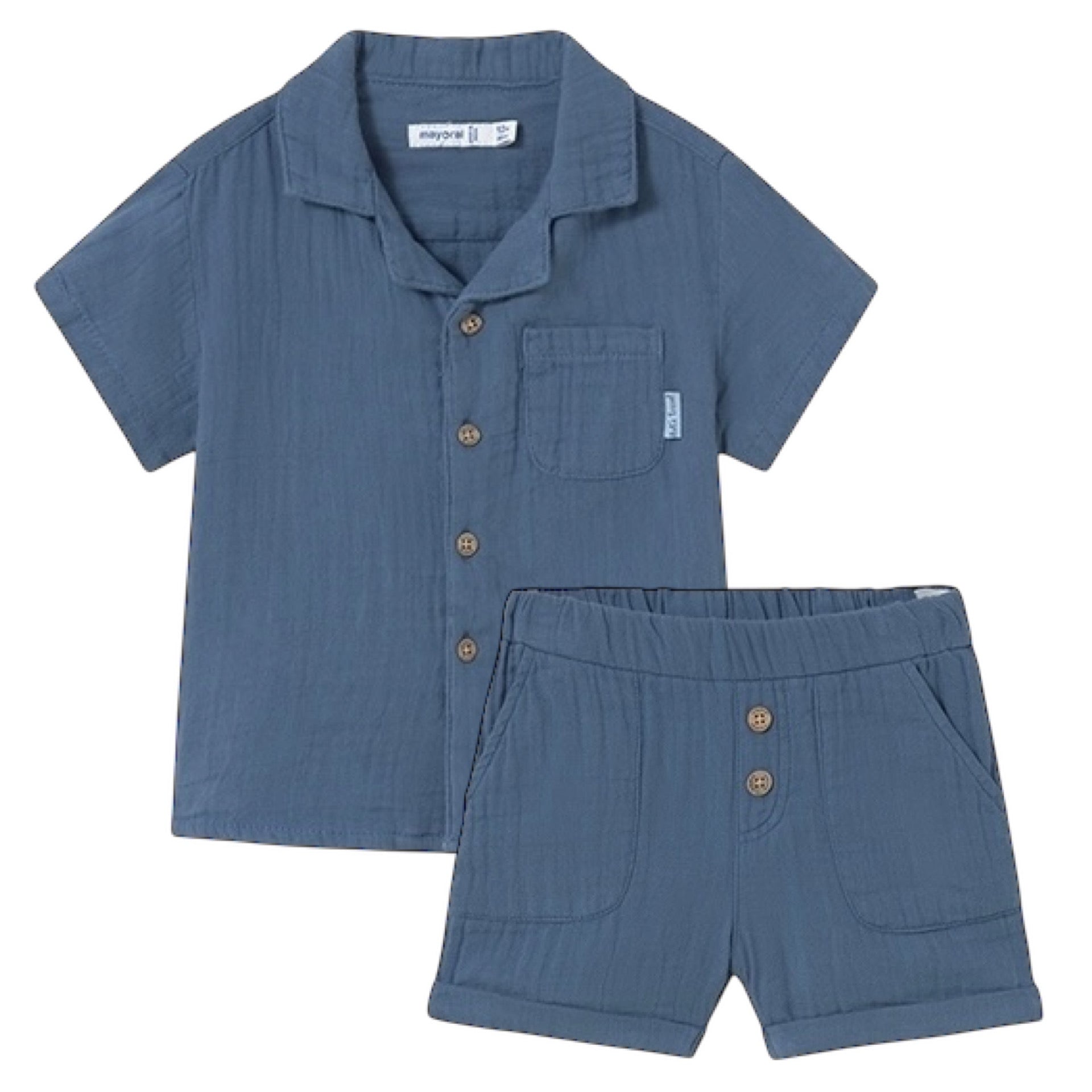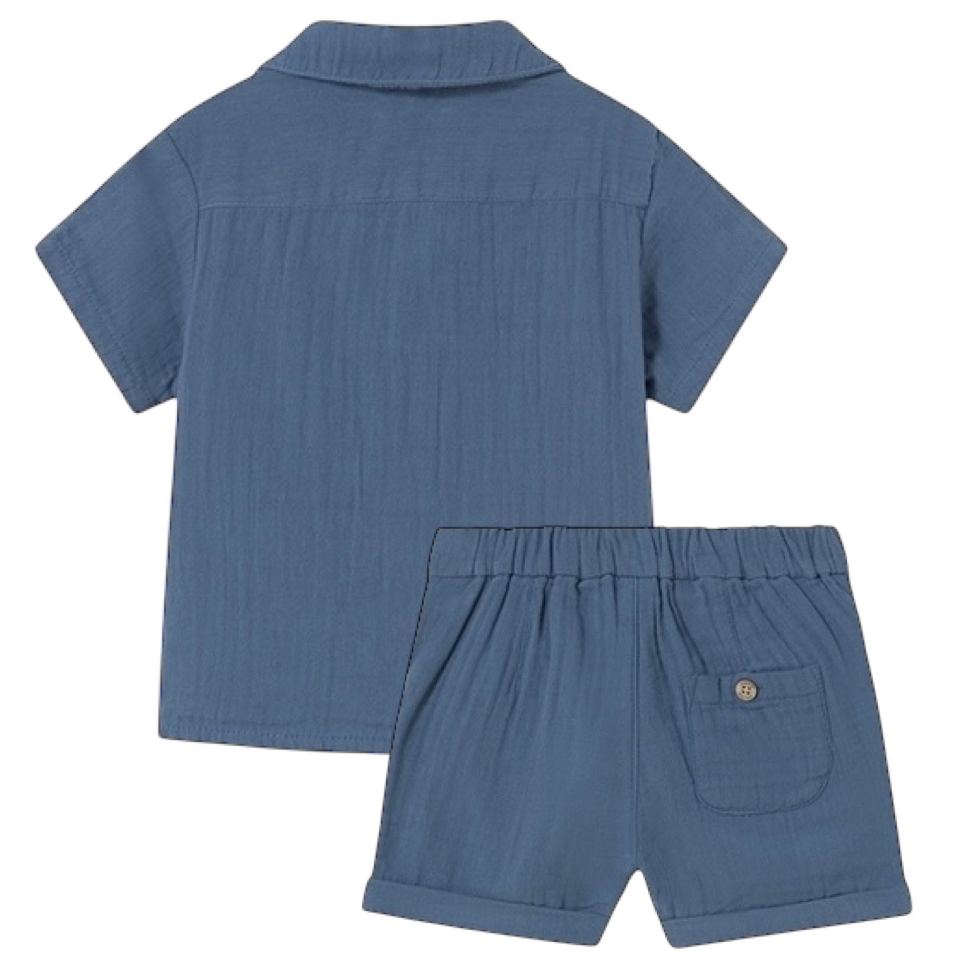 Mayoral Boys Dark Blue Cotton Crinkle Short Set