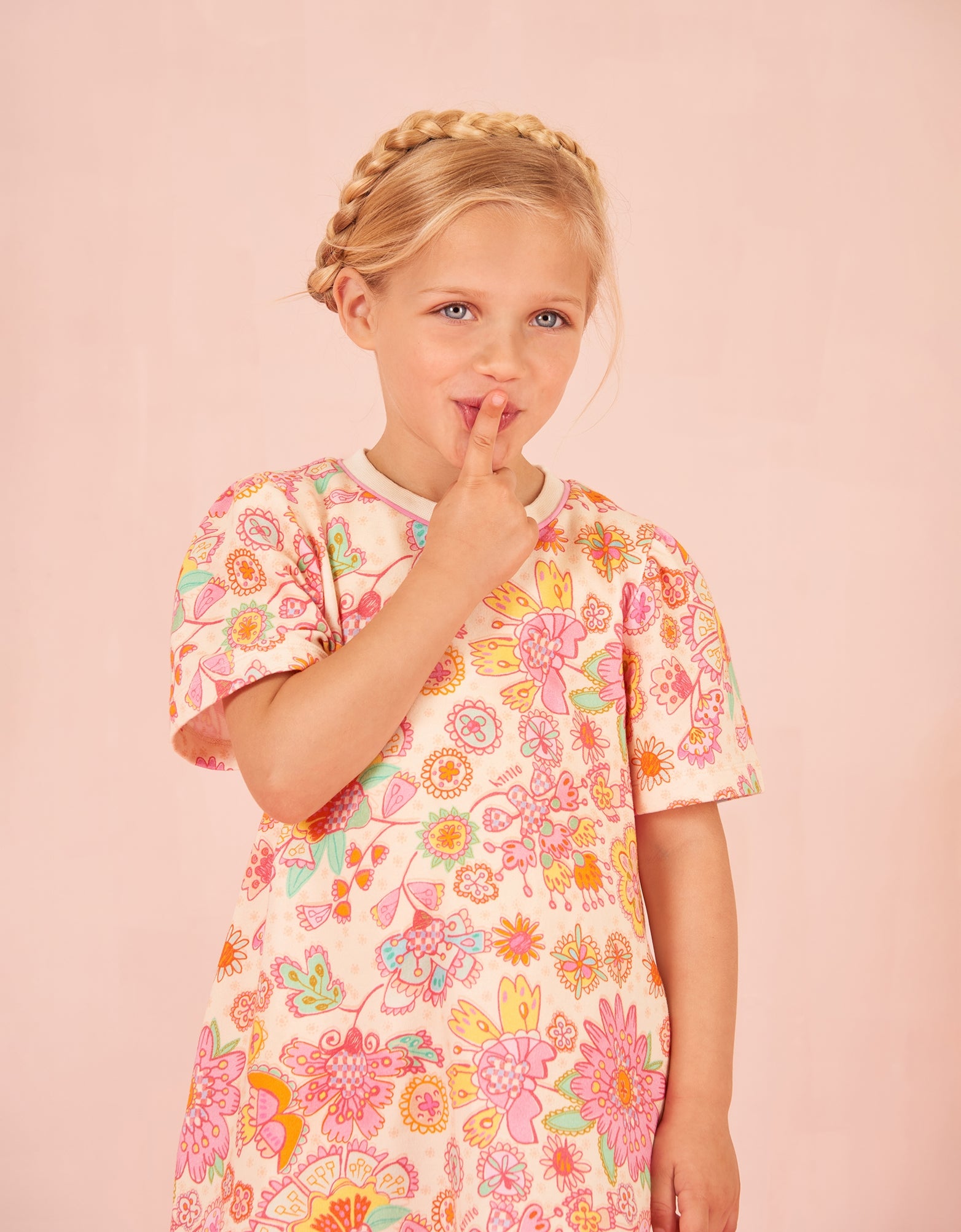 Oilily Girls Pink Multi Flower Sweatshirt Dress