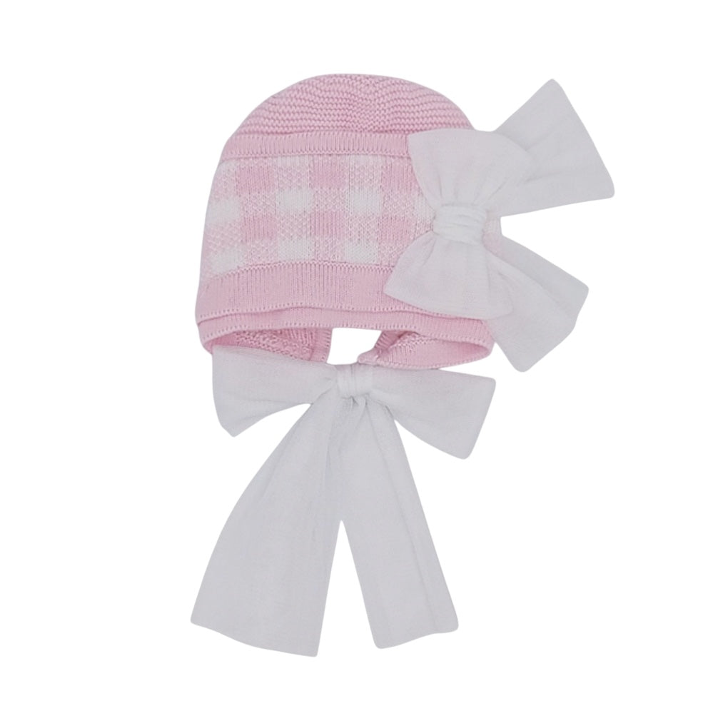 Girls Pink Gingham Knit Bonnet
