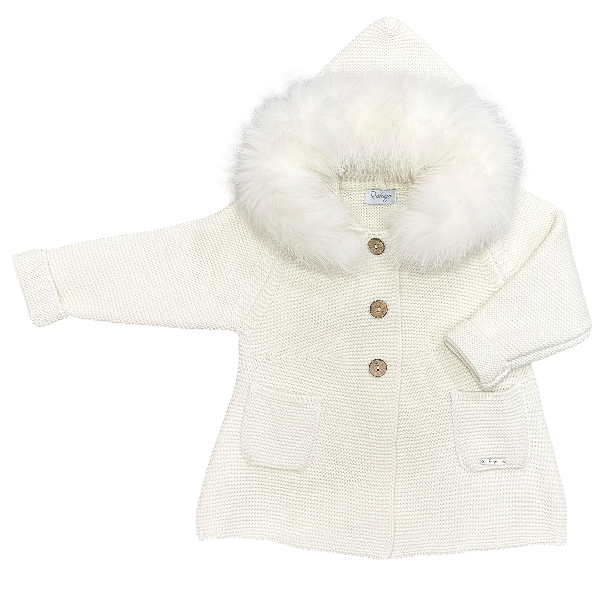 Rahigo Girls Cream Knit Fur Trim Cardigan