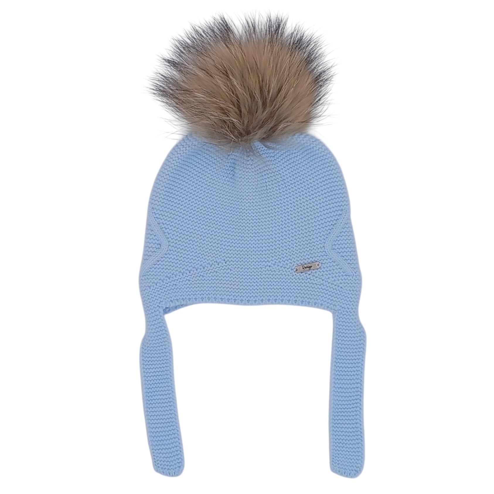 Rahigo Boys Pale Blue Knit Fur Tie Hat