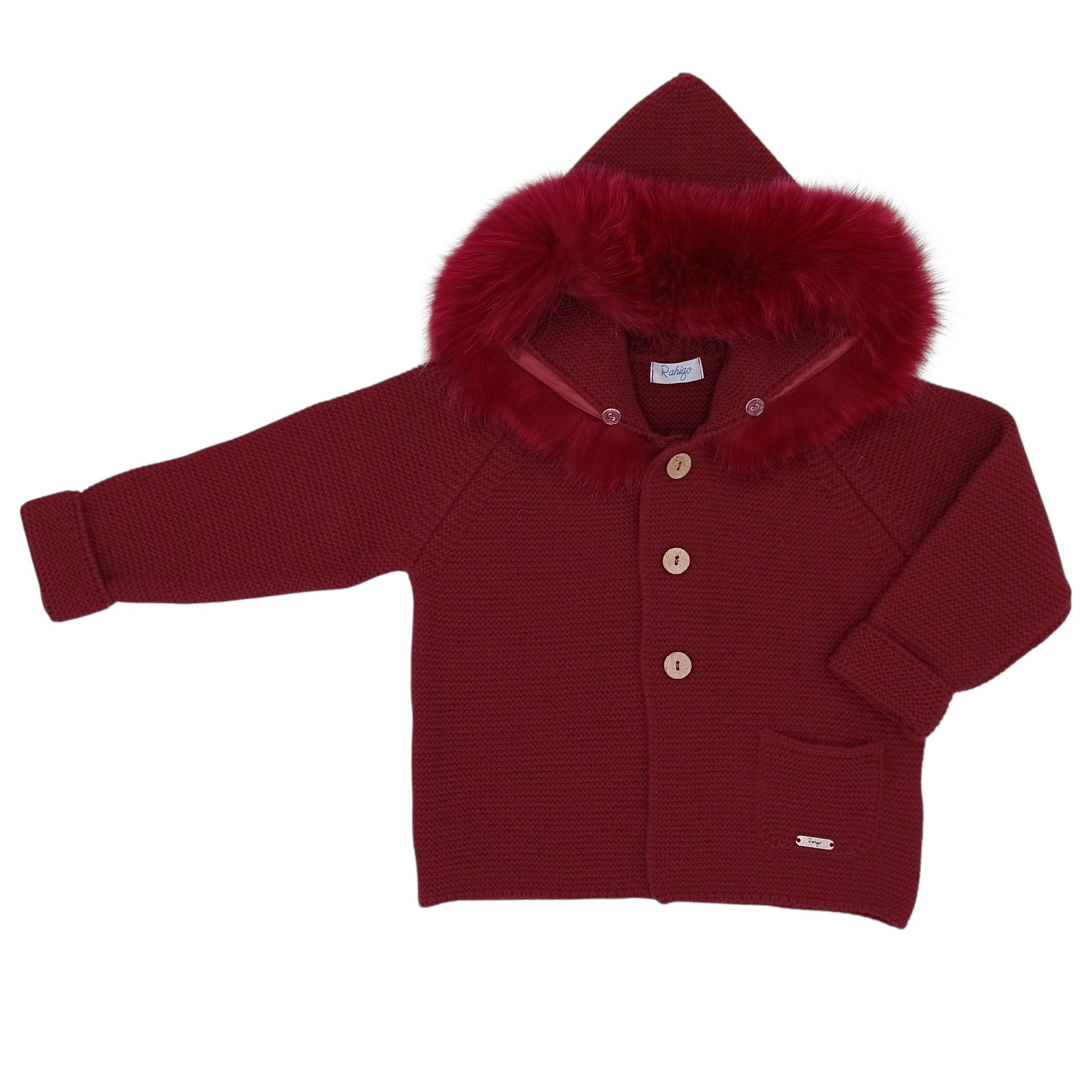 Rahigo Dark Red Knit Fur Trim Cardigan