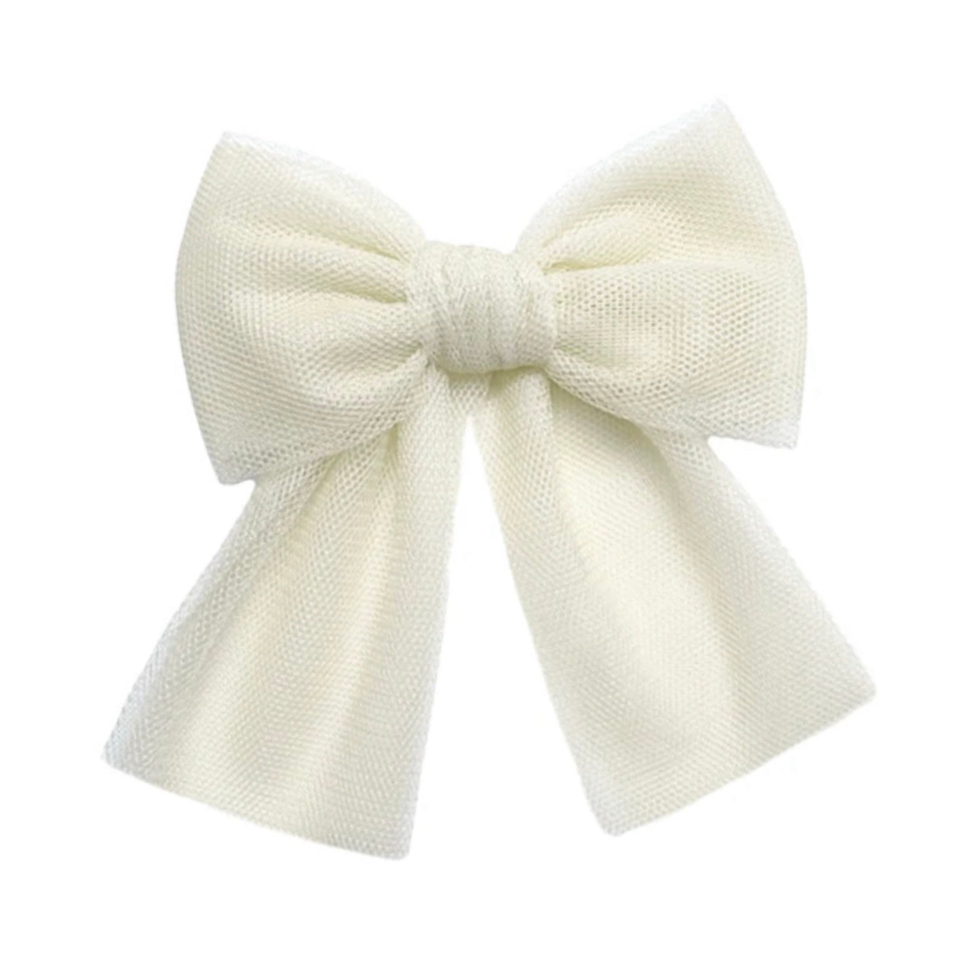 Girls Cream Tulle Bow Clip