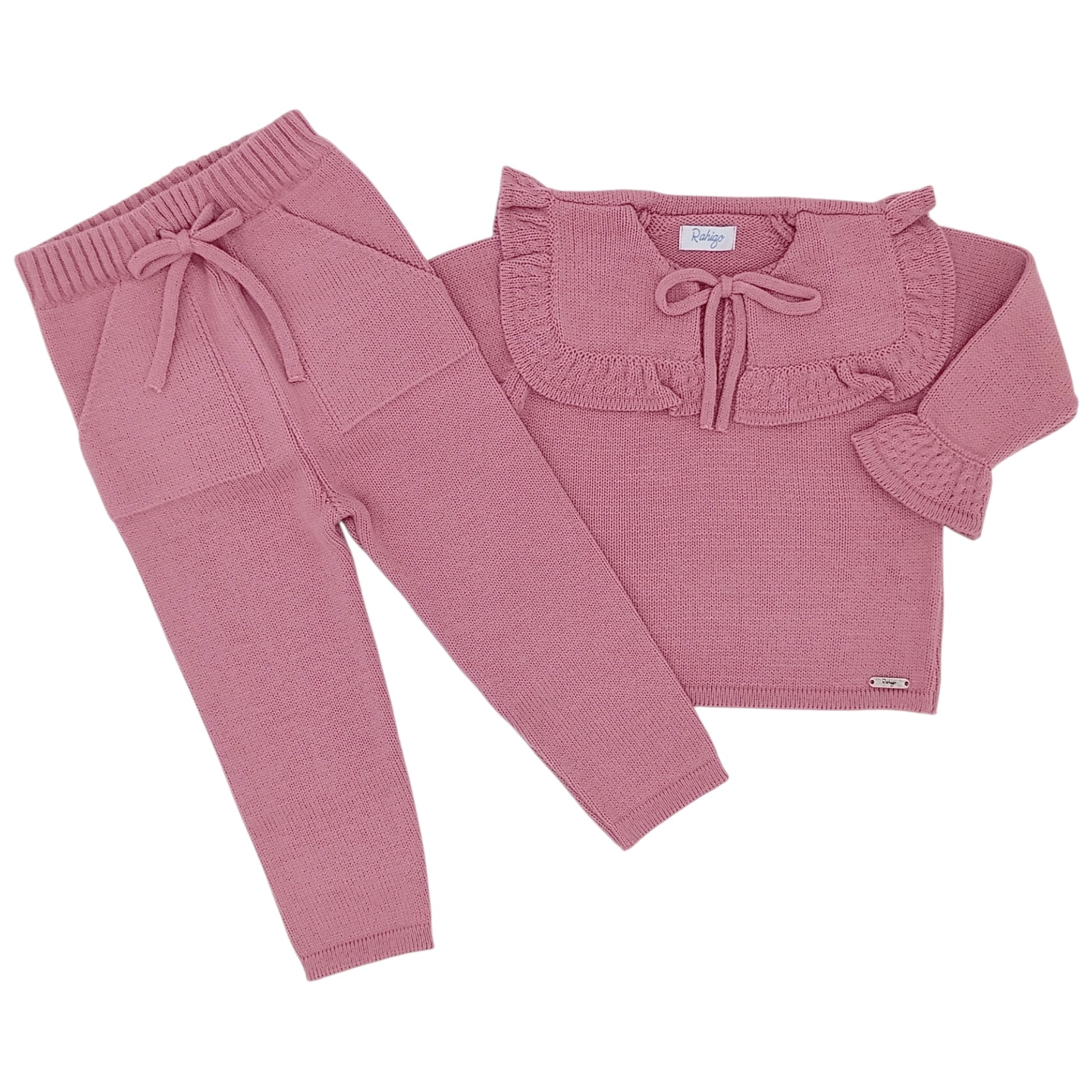 Rahigo Girls Dusty Pink Knit Collared Tracksuit