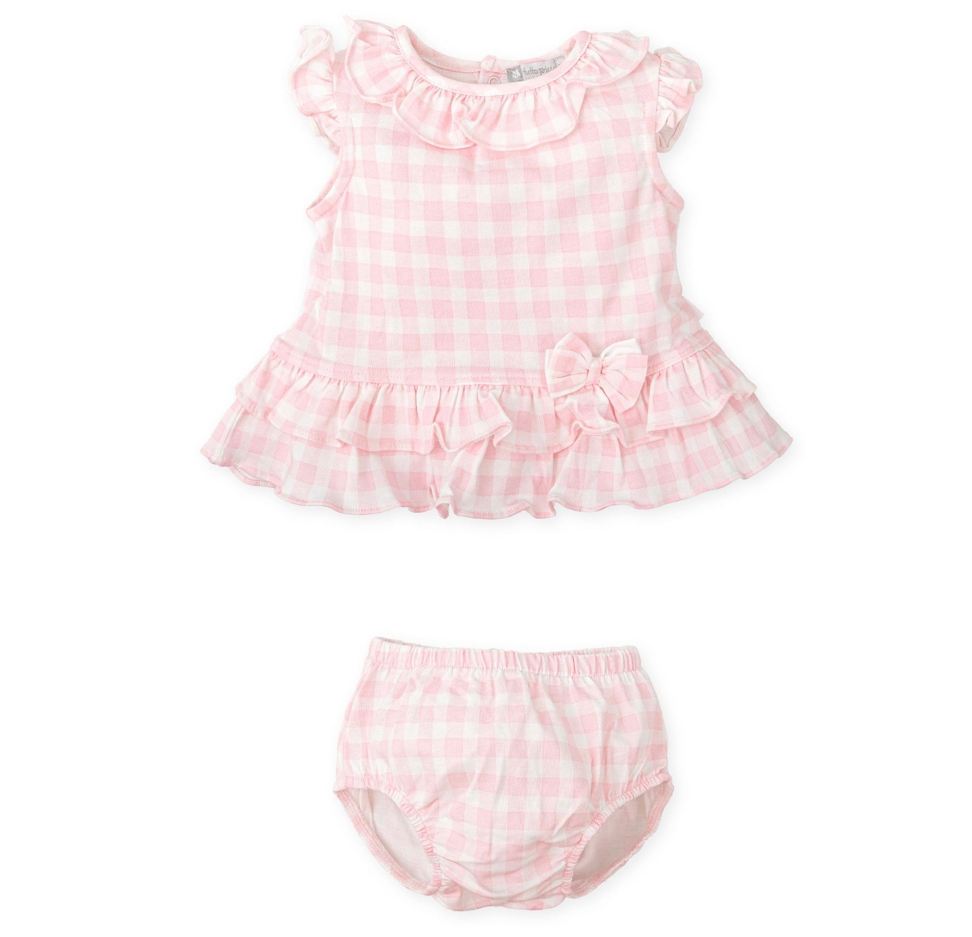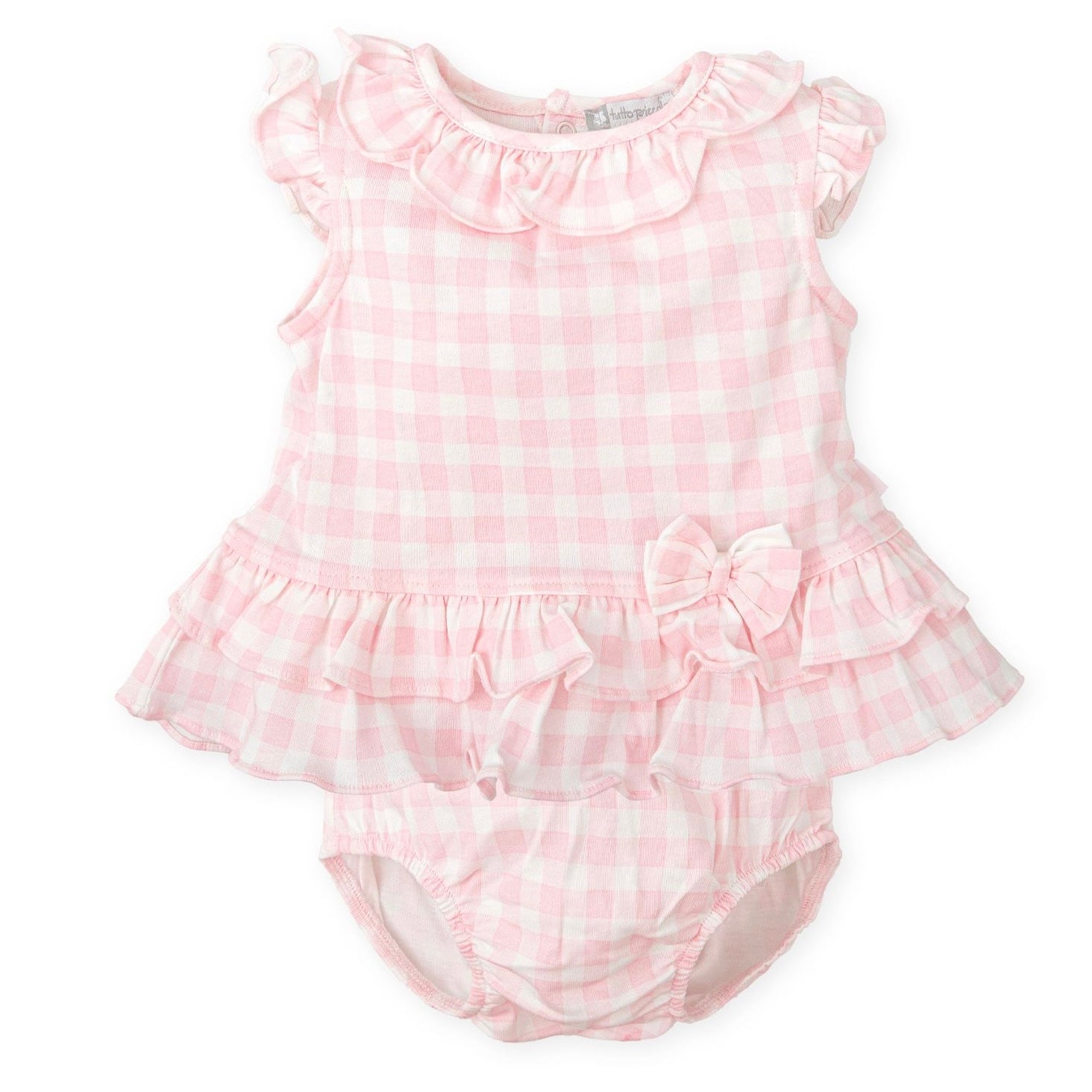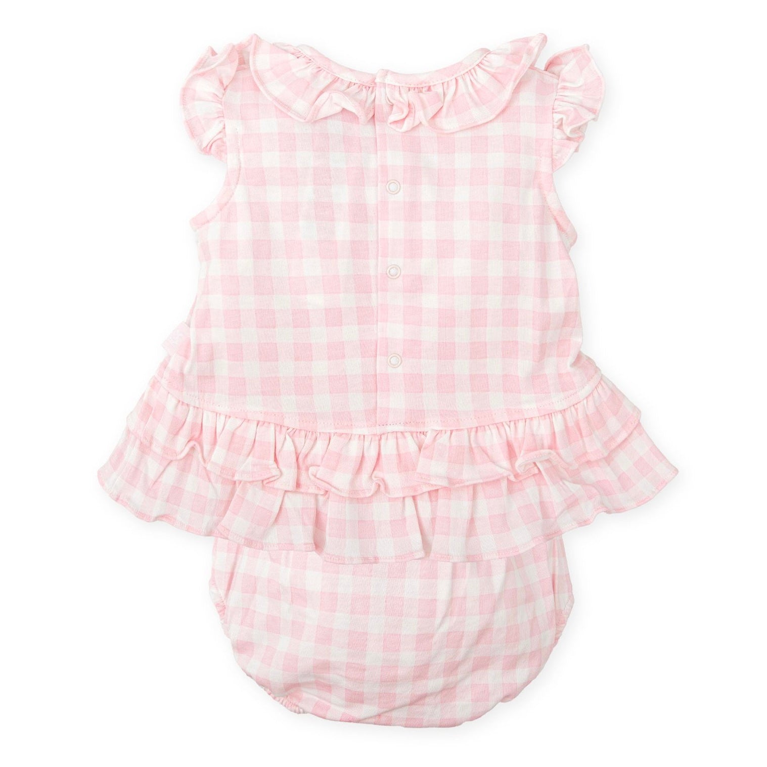 Tutto Piccolo Girls Pale Pink Check Jersey Dress Set