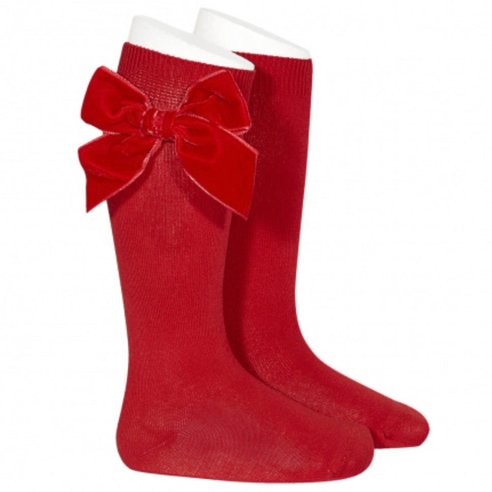 Condor Girls Bright Red Velvet Bow Knee Socks
