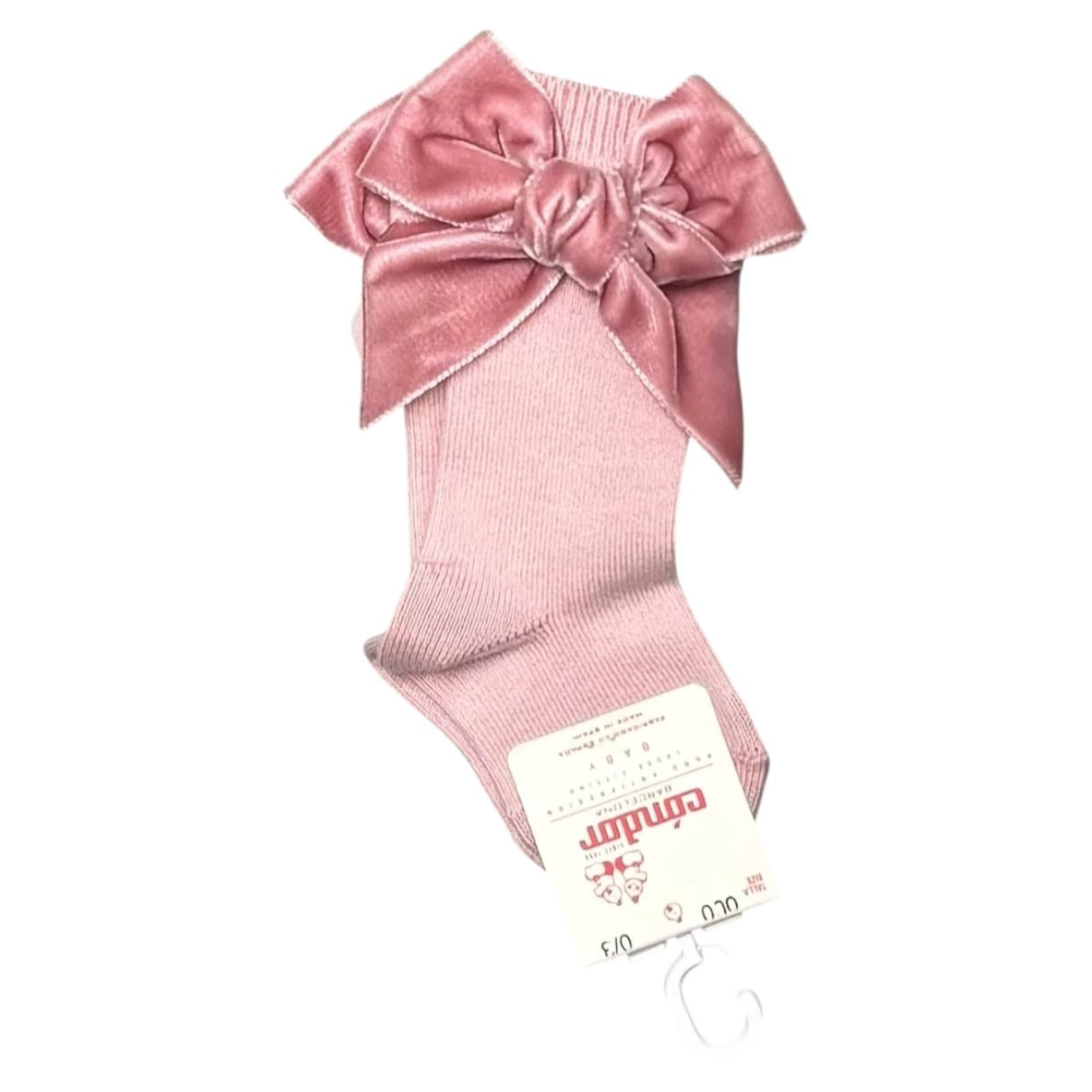 Condor Girls Rose Pink Velvet Bow Knee Socks