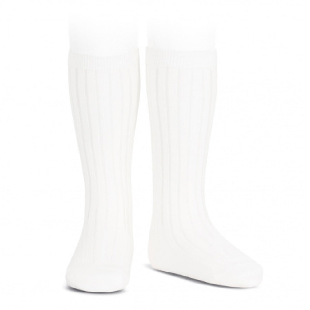 Condor White Ribbed Knee Socks