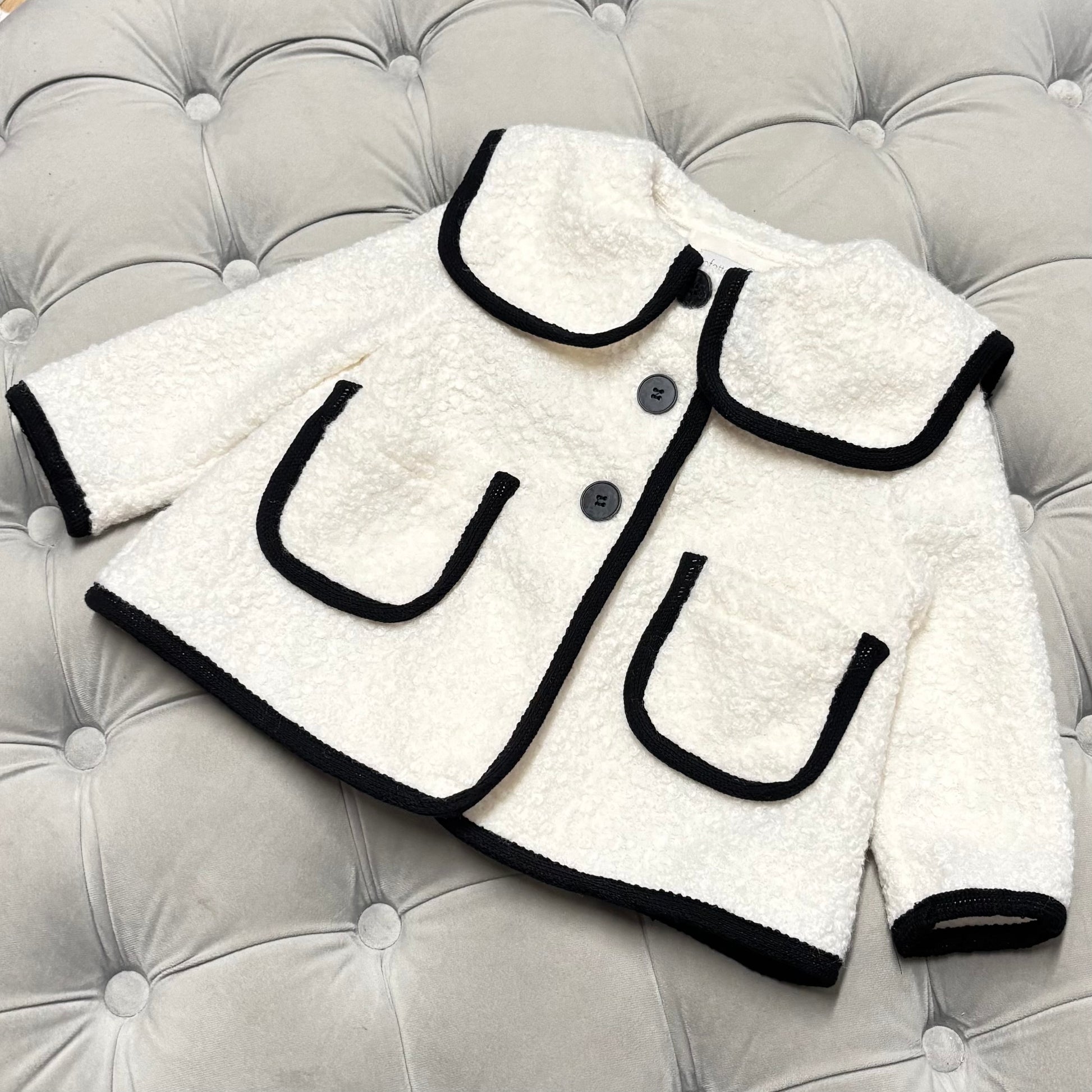 Fofettes x Be Chic Girls Cream Boucle Black Trim Jacket