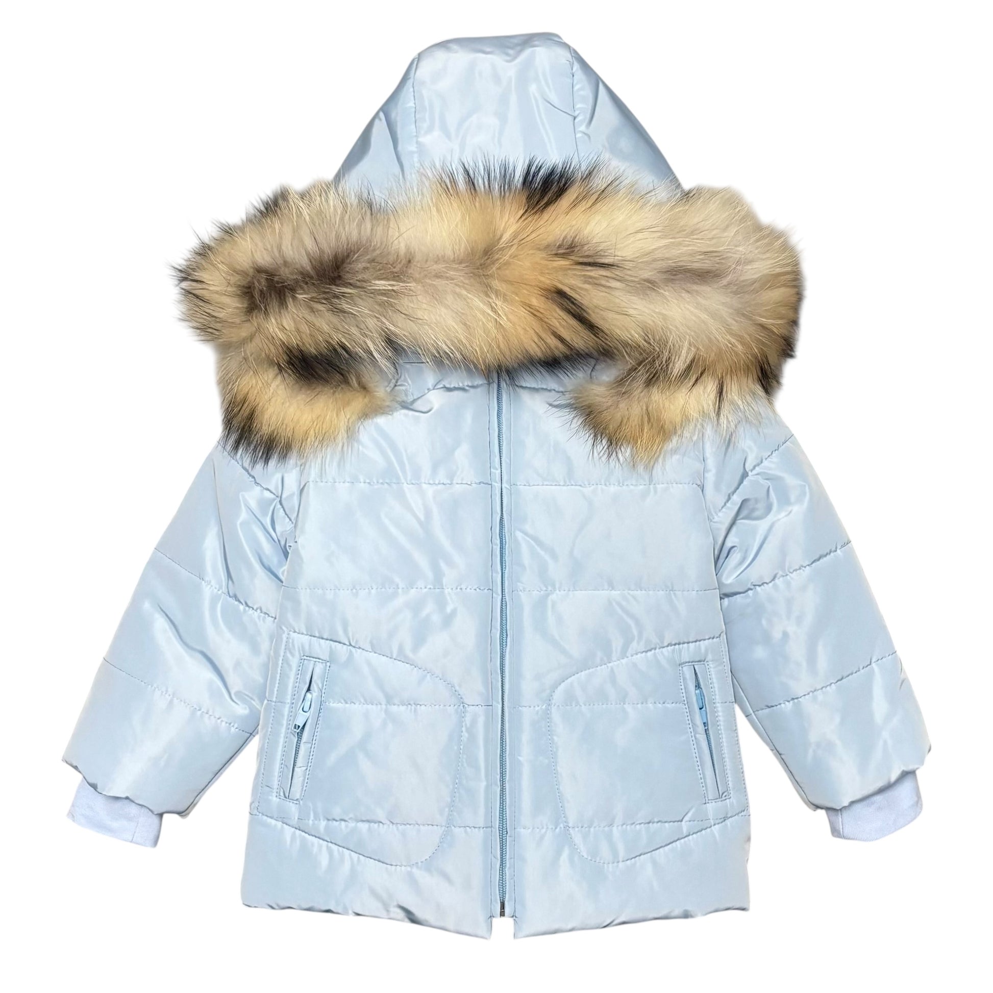 Boys Pale Blue Fur Trimmed Coat