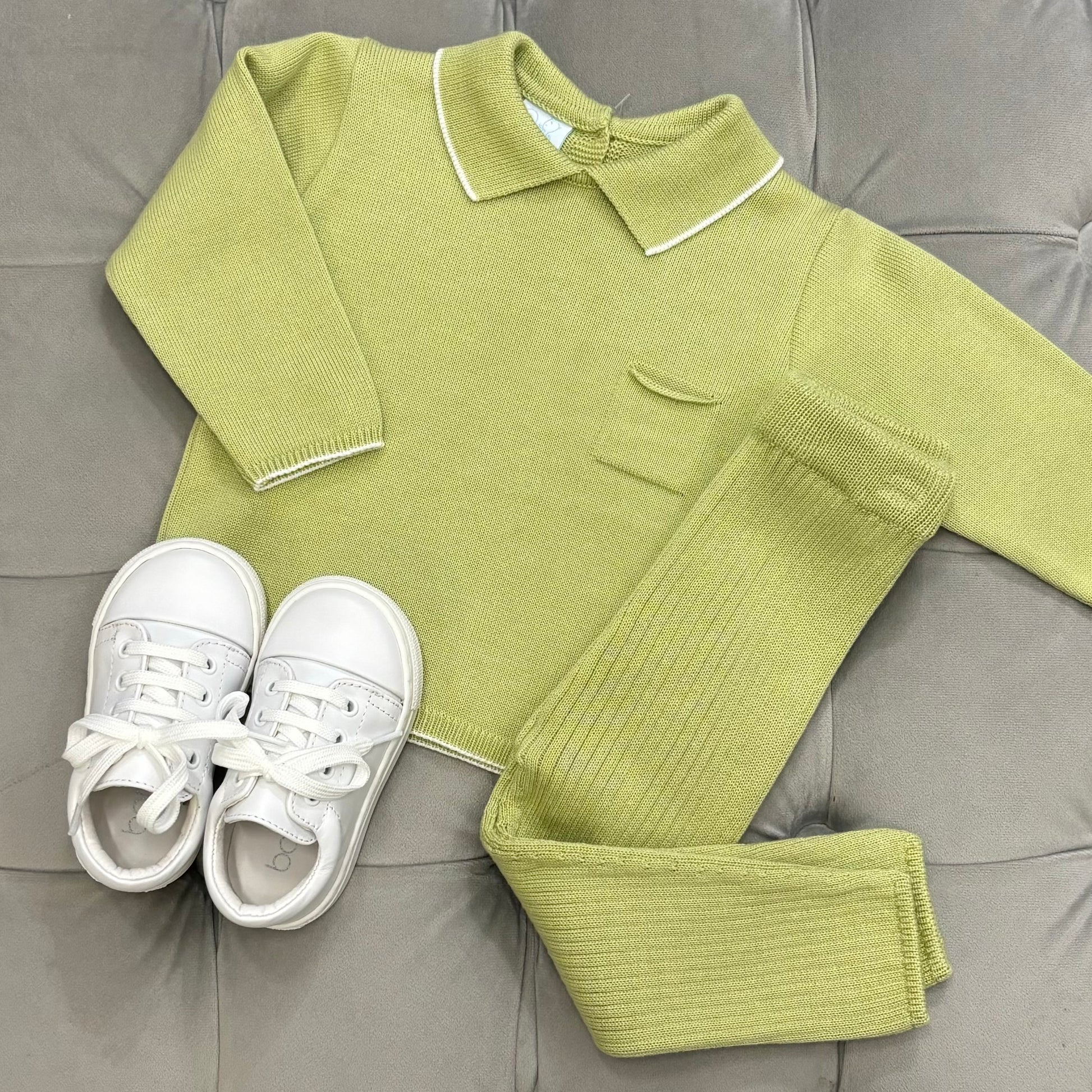 Granlei Boys Pistachio Green Knit Ribbed Trouser Set