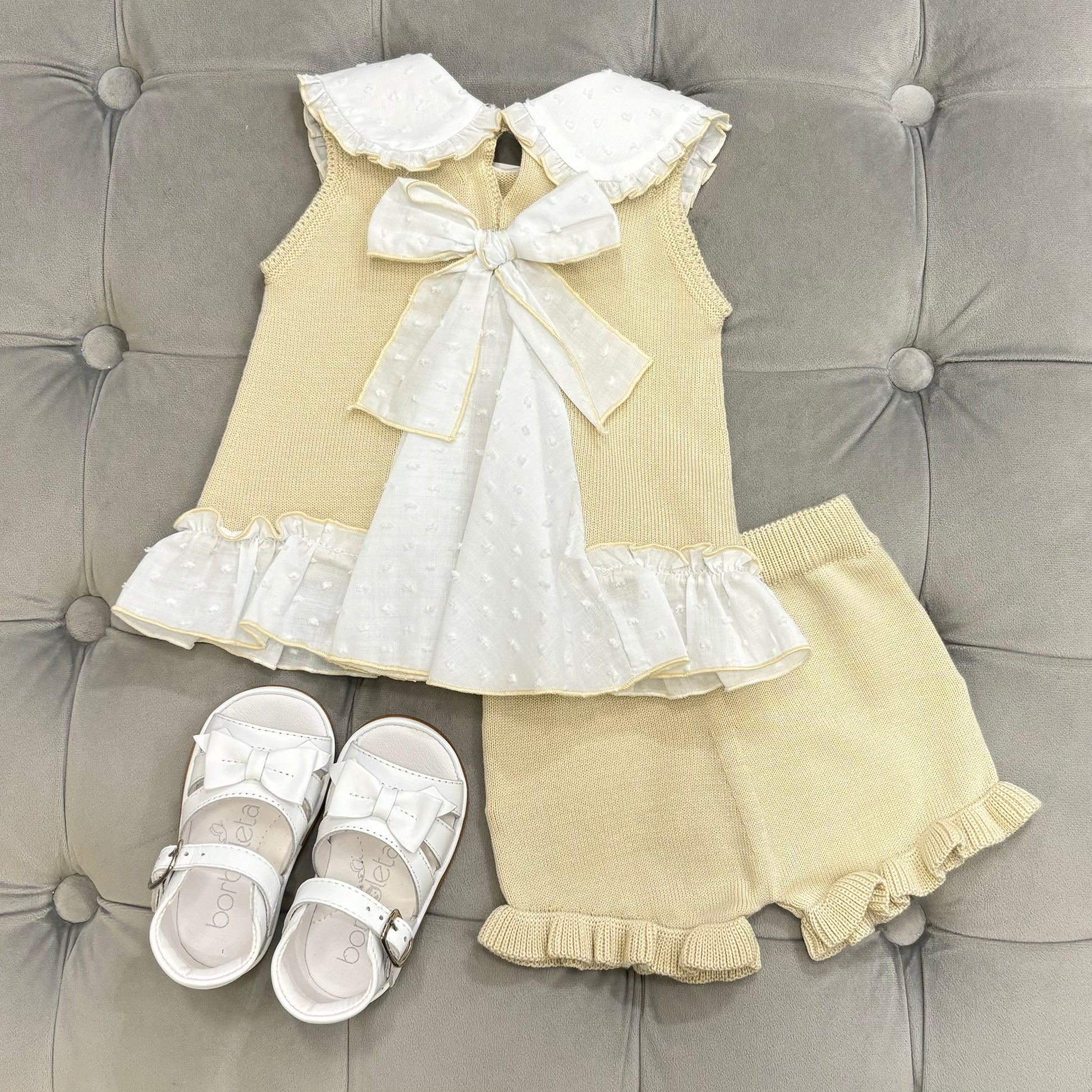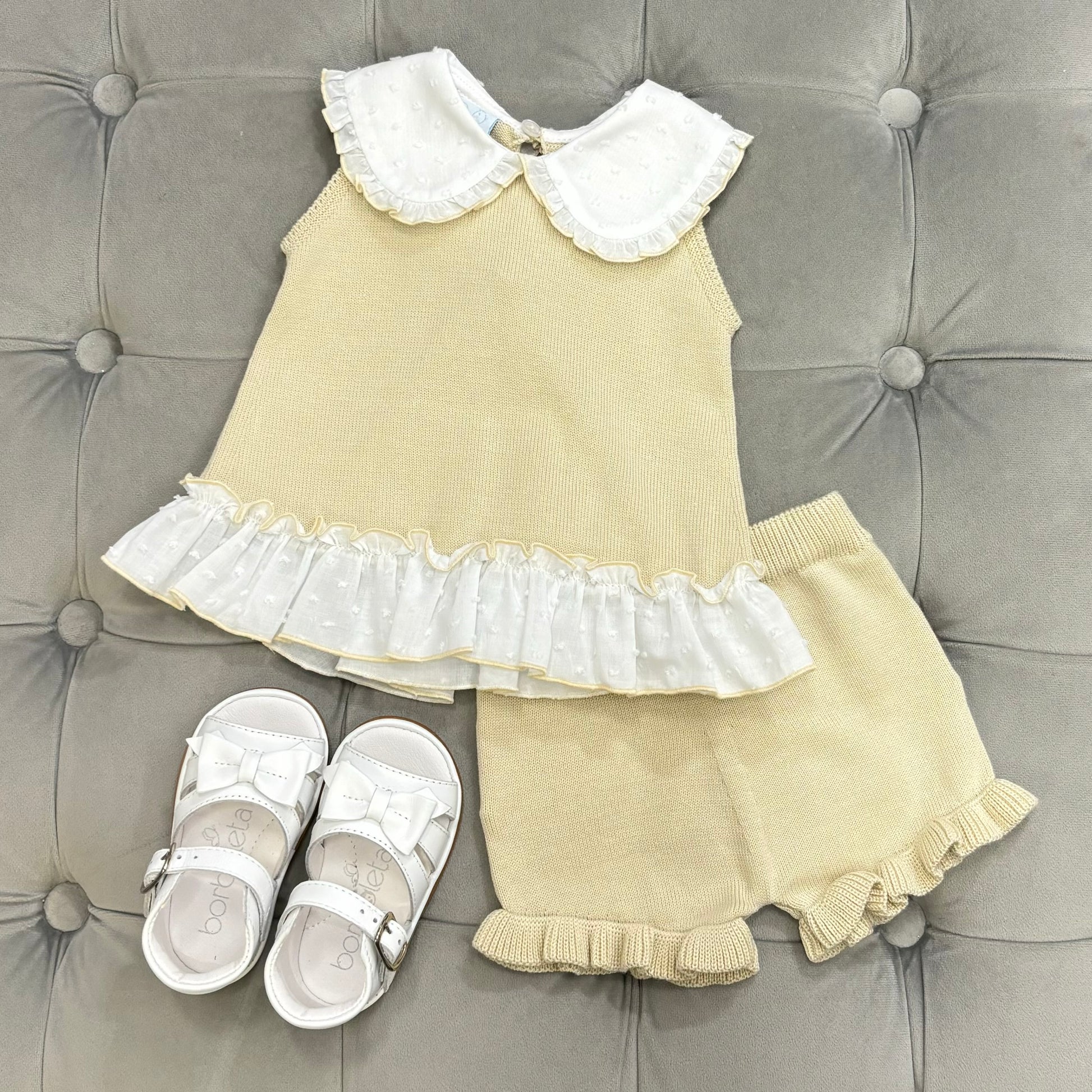 Granlei Girls Neutral Beige Knit Collared Short Set